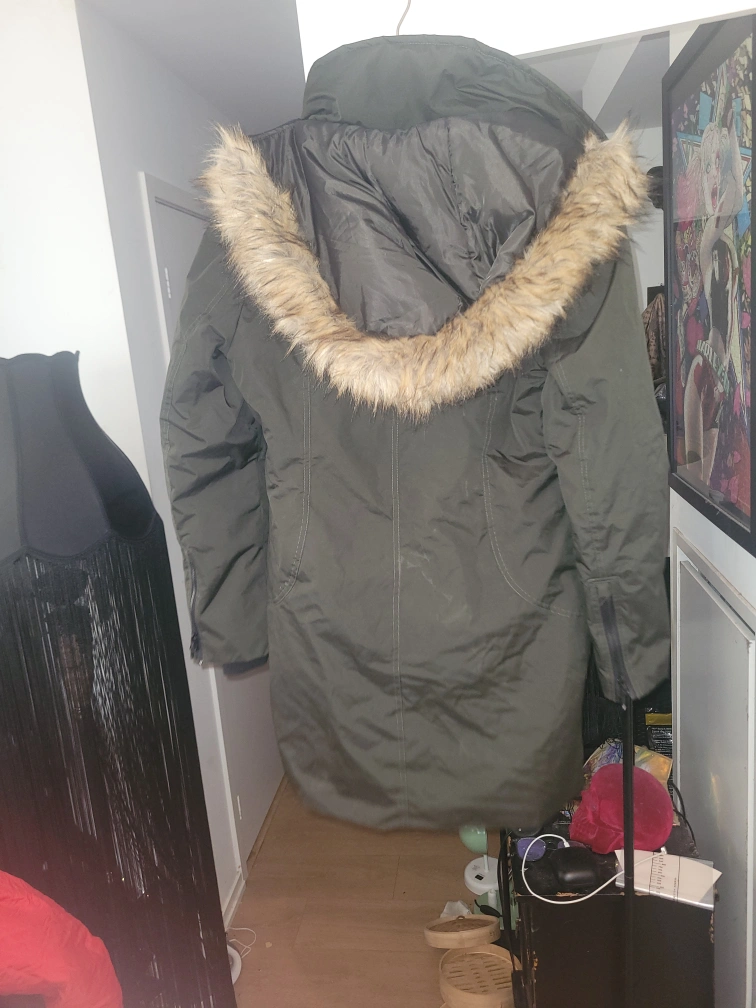 Green parka with a faux fur hood. Cruelty Free Size M Please don’t ask if it’s available. If it’s not marked ‘Pending’ or ‘Sold’, then it’s available. **** Cash Only **** **** Pickup Only **** **** No E-transfers **** **** Serious Inquiries Only ****