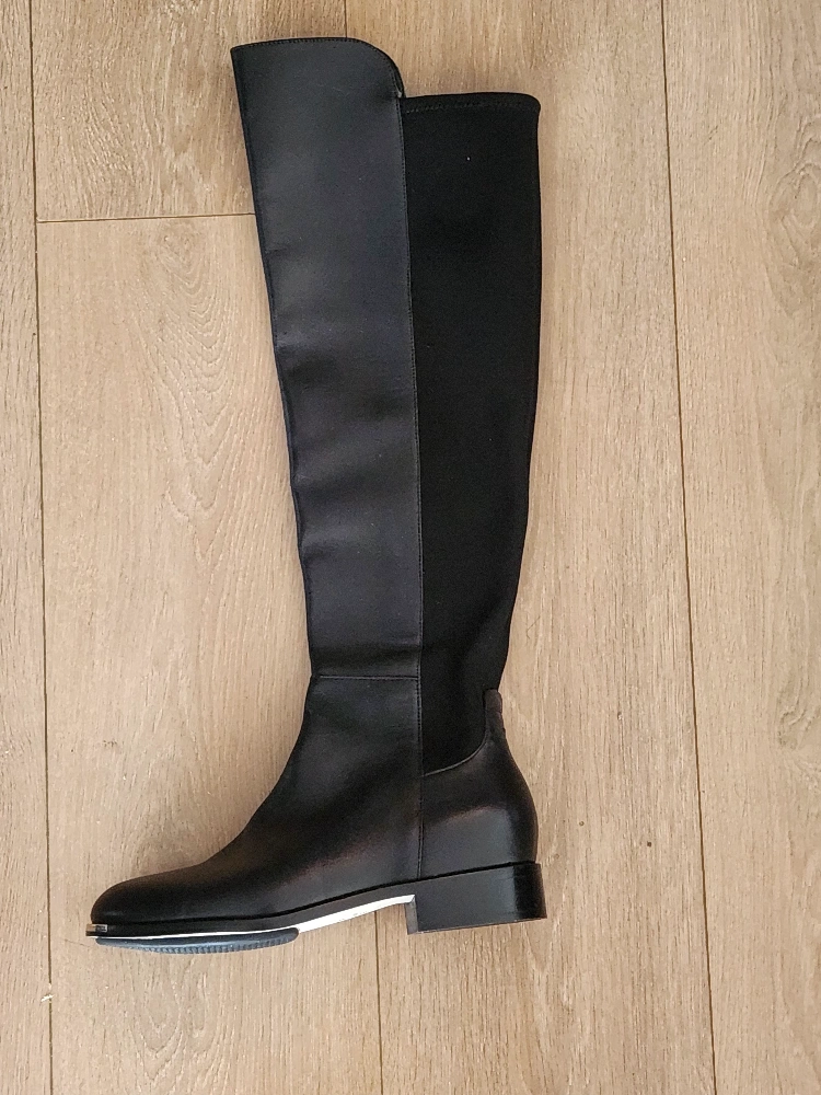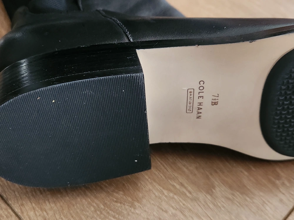 Cole Haan Black leather knee high boots. Gold accents on the toes. Size 7 1/2 B. Like New Condition. Never worn