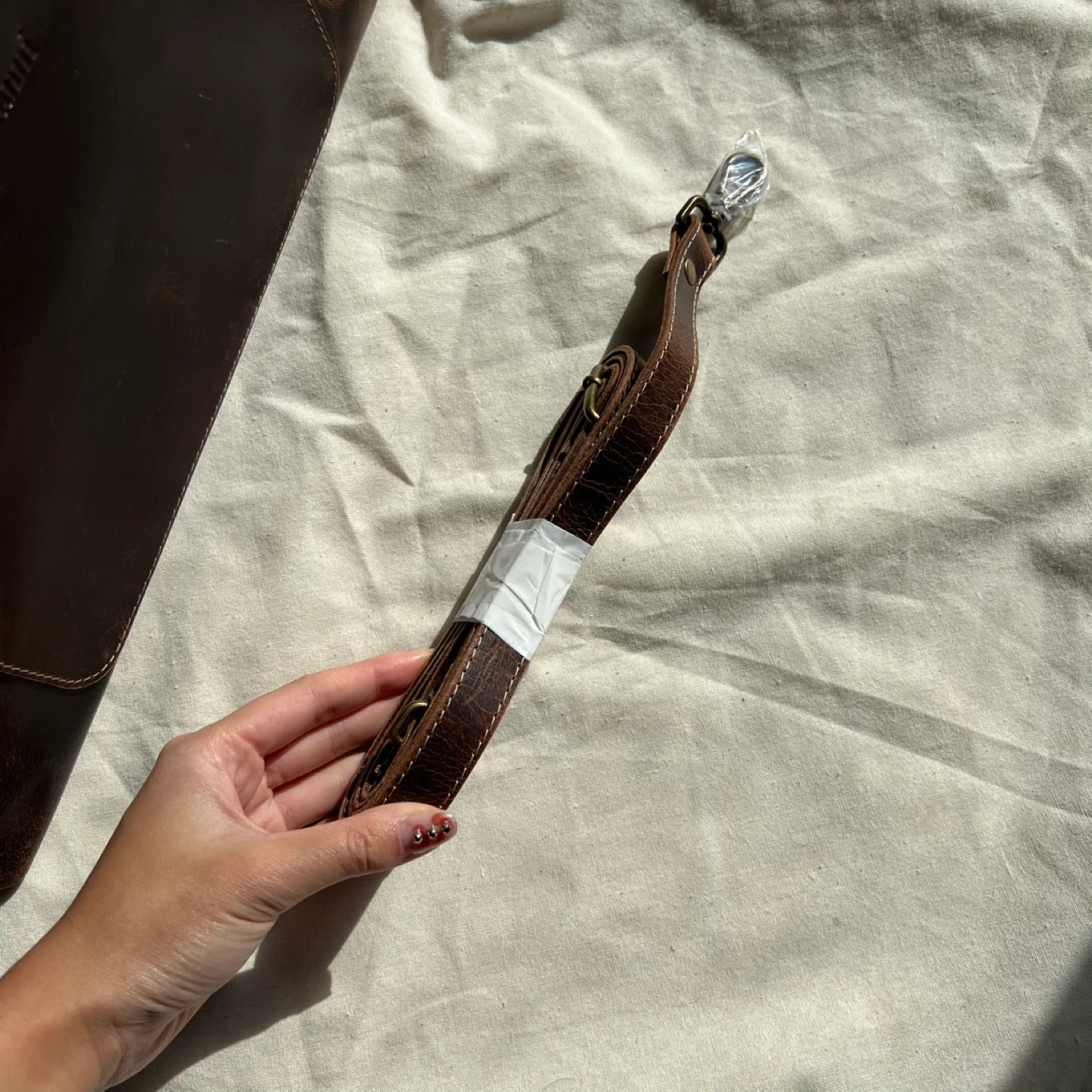 Brand new brown leather hand bag with two top handles and an adjustable strap. Comes with a dust bag and a longer shoulder strap.