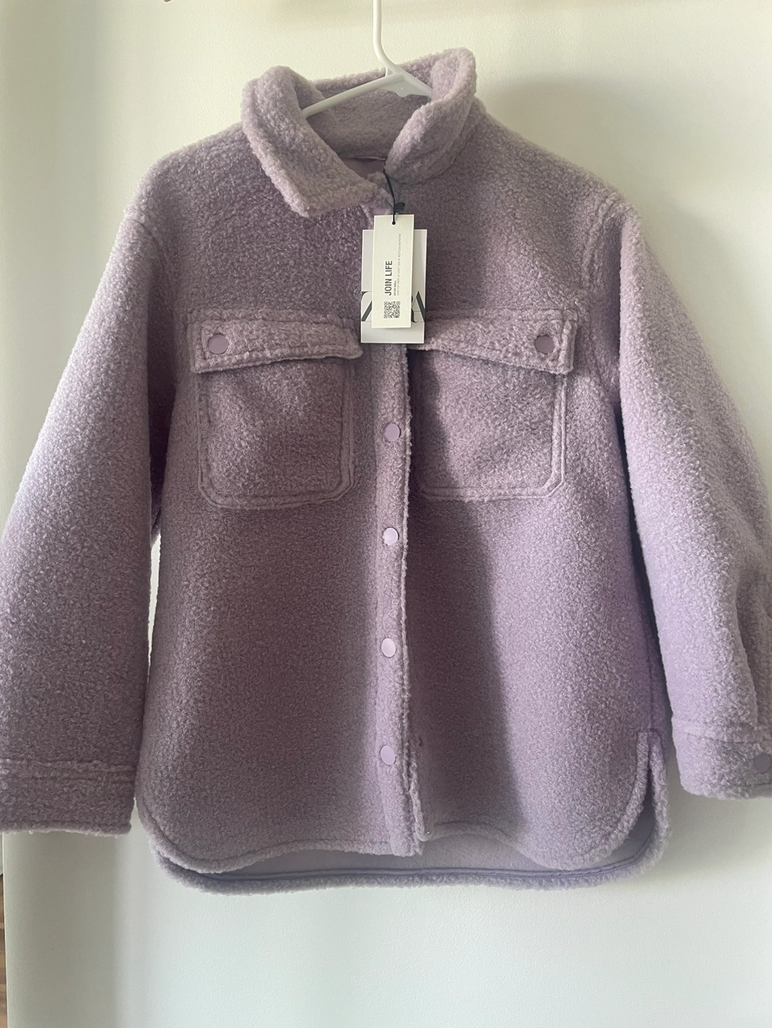Brand new Lilac fleece jacket with two chest pockets and snap closure.