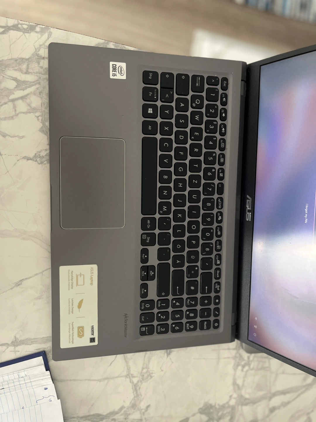 1000+Bought in Germany, it has dual keyboard, you can switch to German or English. Both works fine. Comes with charger. Regular price $600+tax Specifications: Intel UHD graphics • Slate Grey • 15.6” HD Display • Intel Core i5 • 8GB DDR4 RAM • Intel UHD graphics • 256GB SSD • Windows 11 Home • USB 3.2 Type-A (Gen1), USB 3.2 Type-C (Gen1), USB 2.0, 3.5mm Combo Audio Jack and HDMI