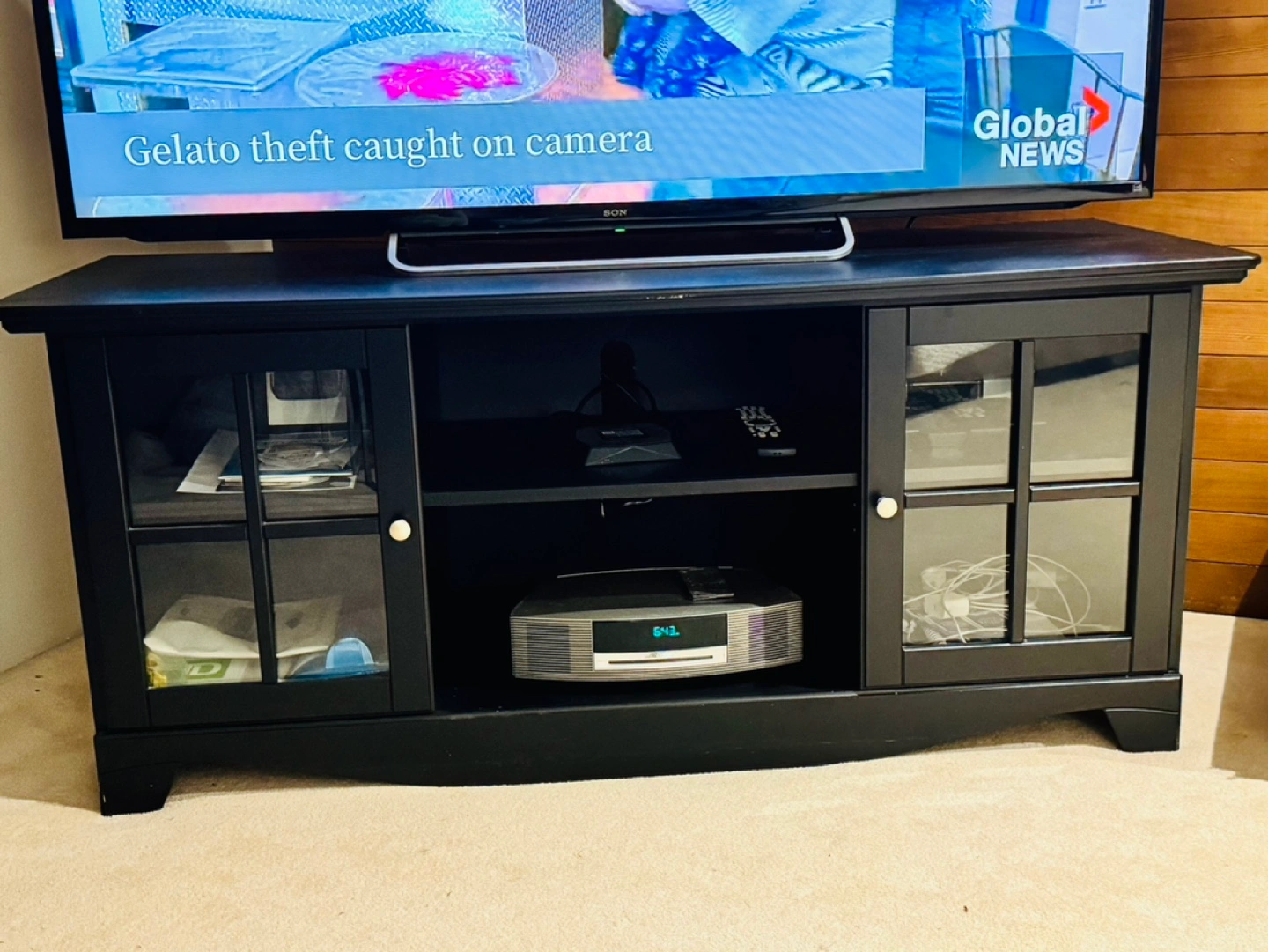 Black TV cabinet with Glass Doors