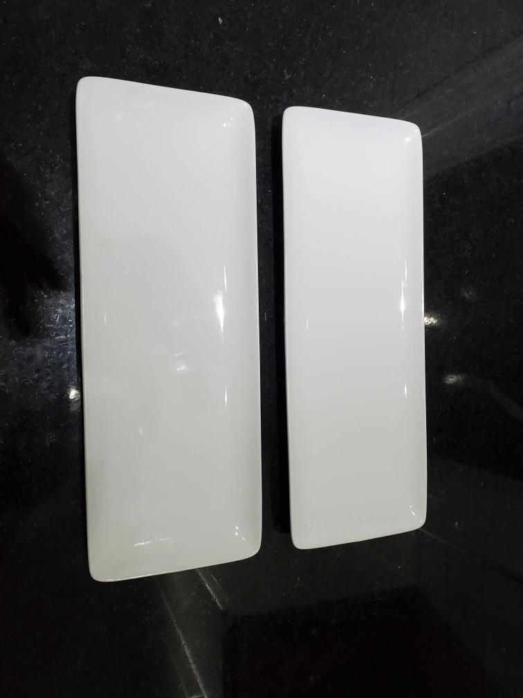 Two white rectangular serving dishes. Perfect for appetizers, snacks, or desserts.