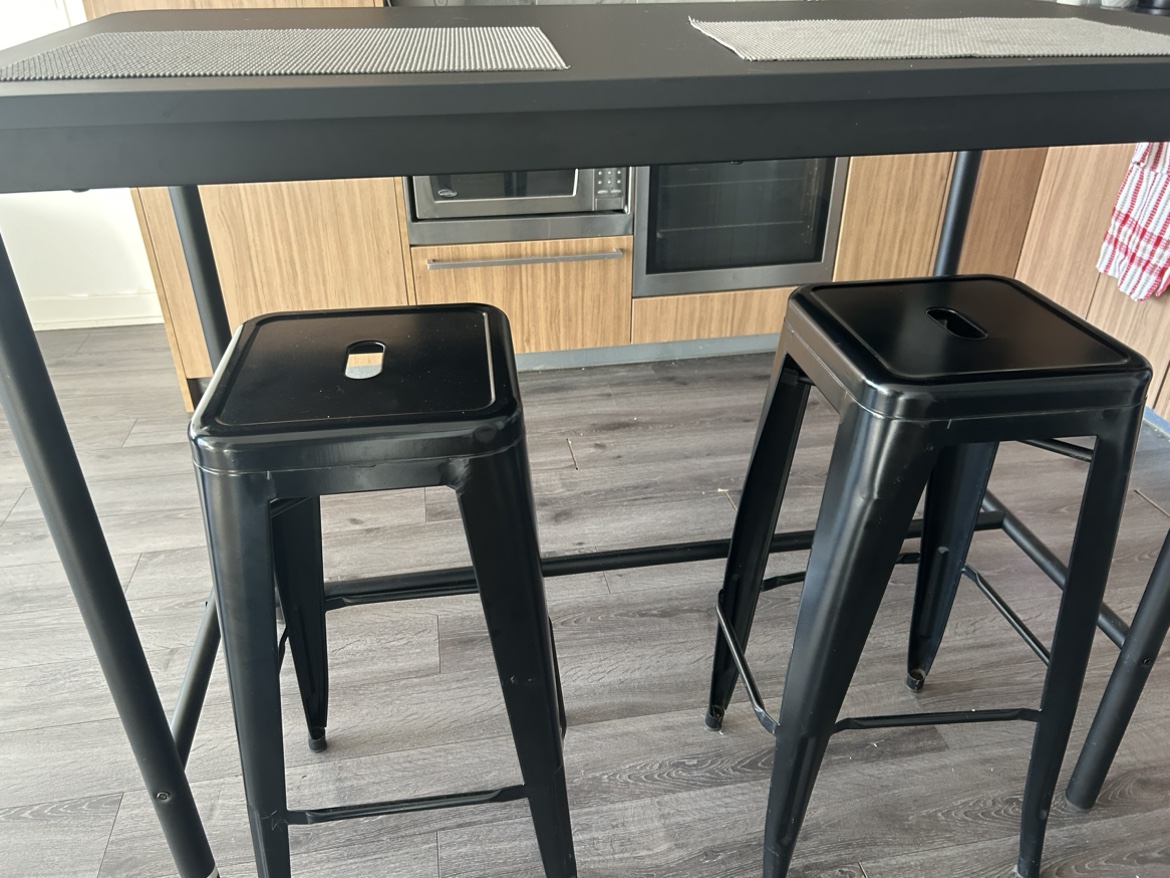 1 / 31 / 3Buy & SellBlack Kitchen Table and Two StoolsBlack Kitchen Table and Two Stools$65Black kitchen table with two black stools.ConditionLike newWHERE TO MEETCity placeView MapSELLERYumeeCityPlace17415 reviews1 chats·0 favorites·37 viewsSEND CHAT TO SELLERHi Yumee! I’m interested in your listing.Hi Yumee! I’m interested in your listing.Get the Karrot app to chatSign In to chat