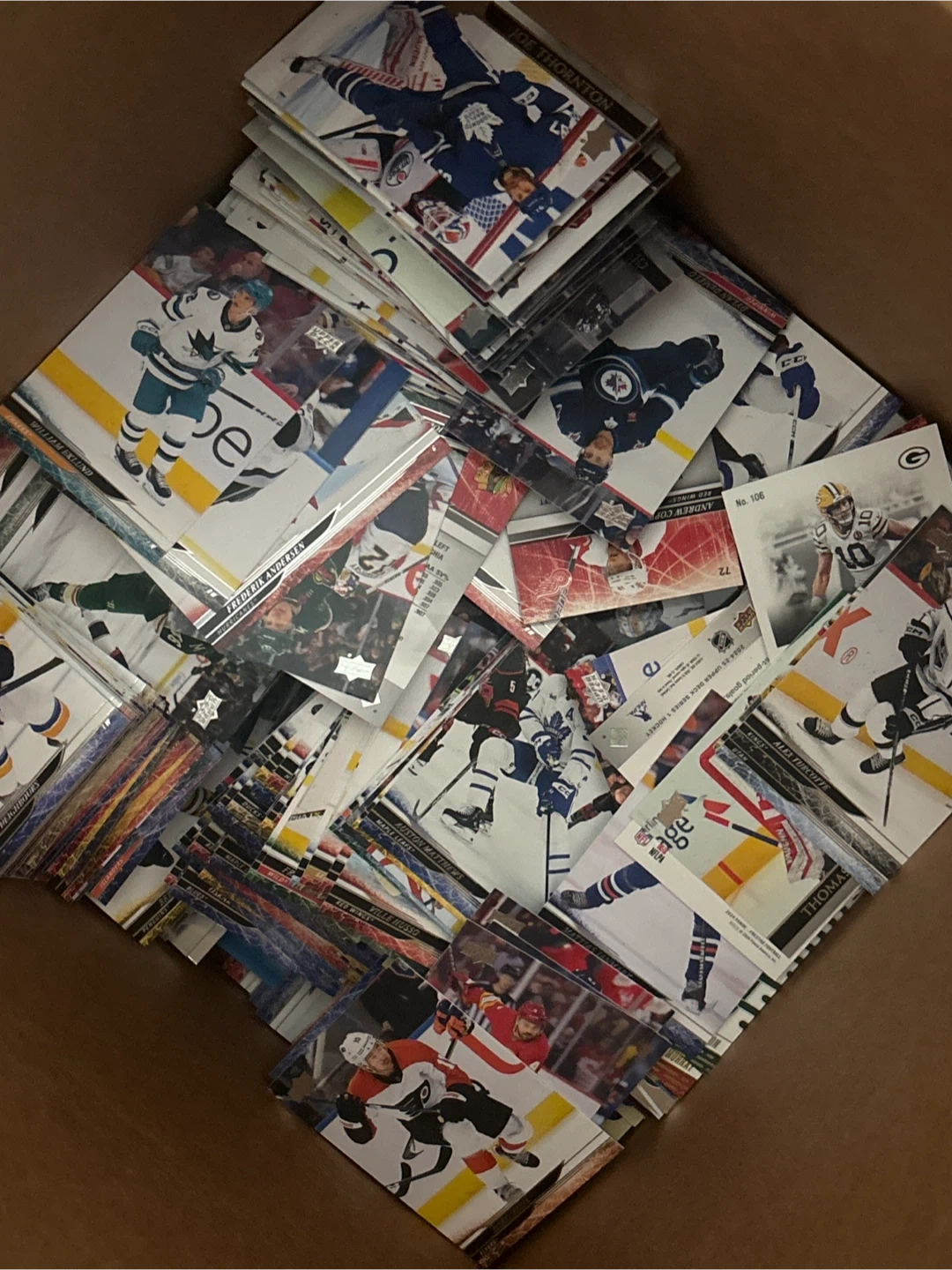 A large collection of hockey cards is up for grabs! These cards feature various players and teams. Great for any hockey fan looking to expand their collection or start a new one.