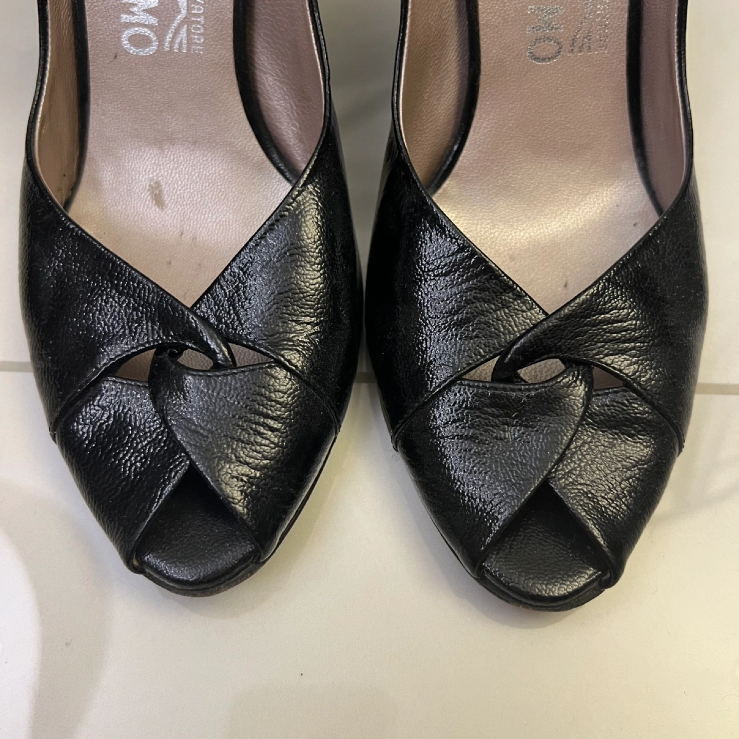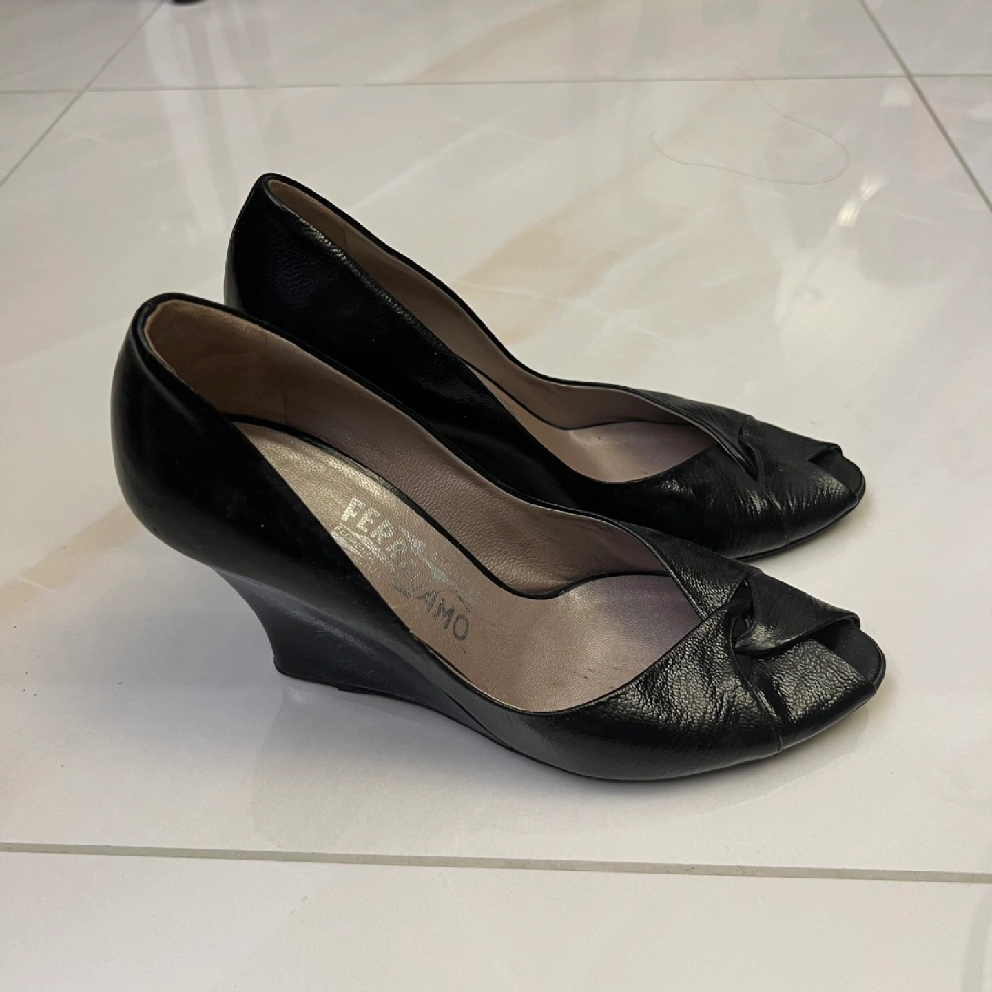 Salvatore Ferragamo Black Leather Wedge Heels Size 7