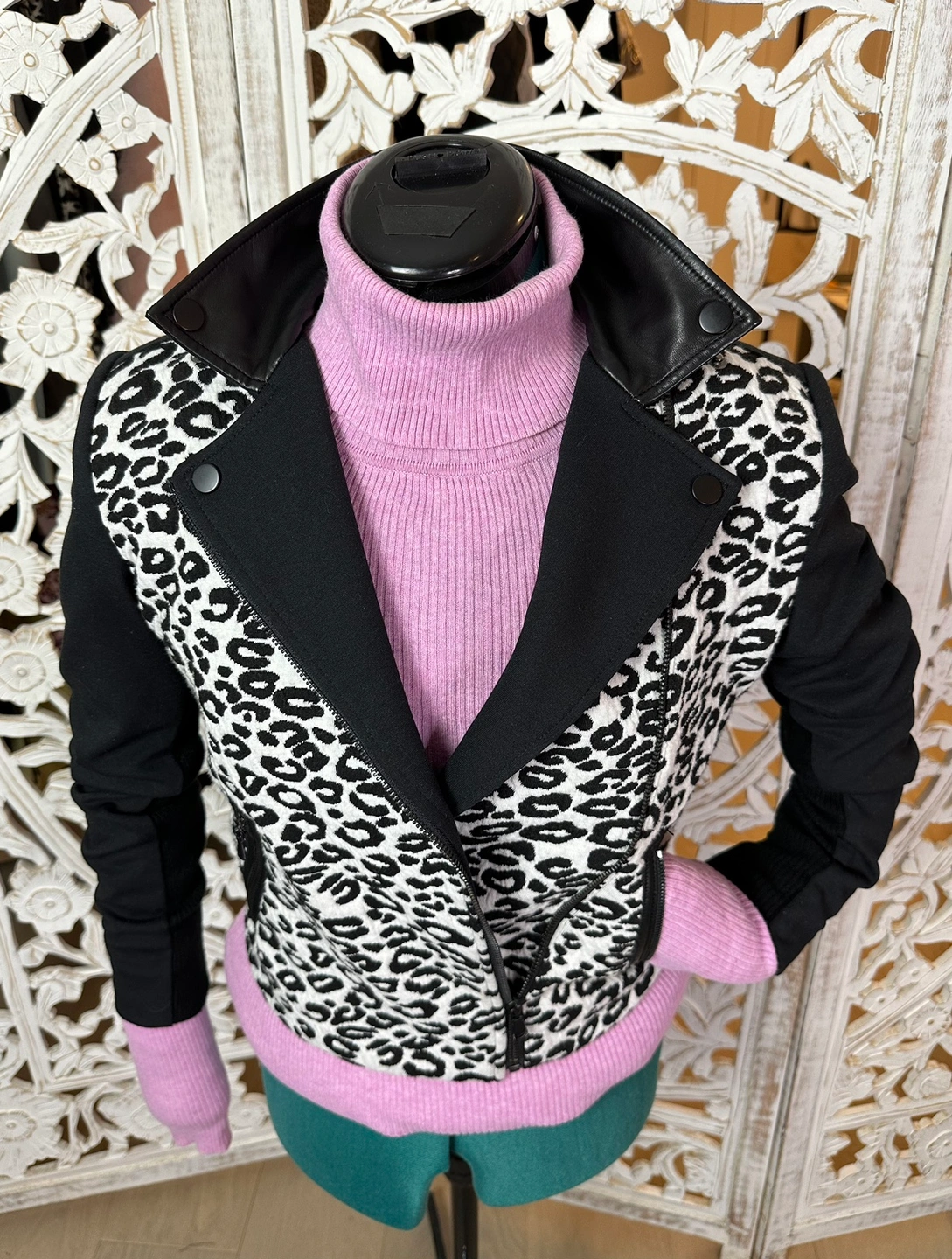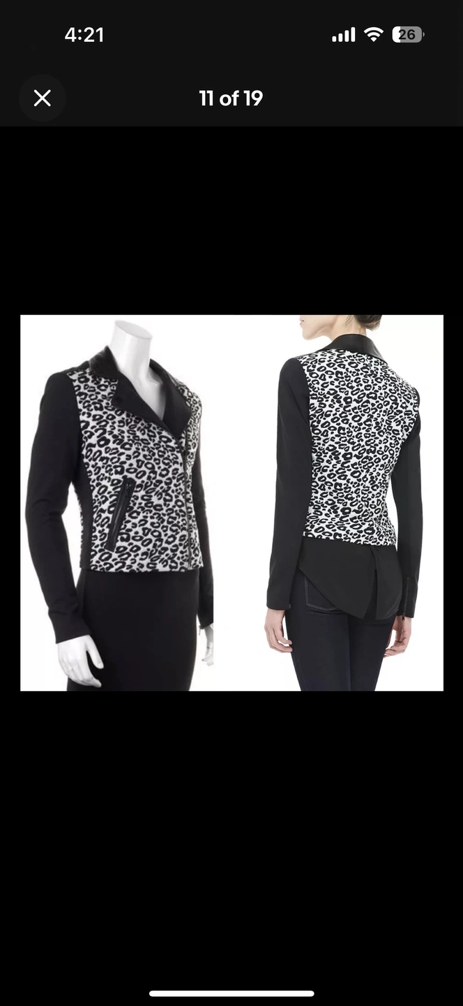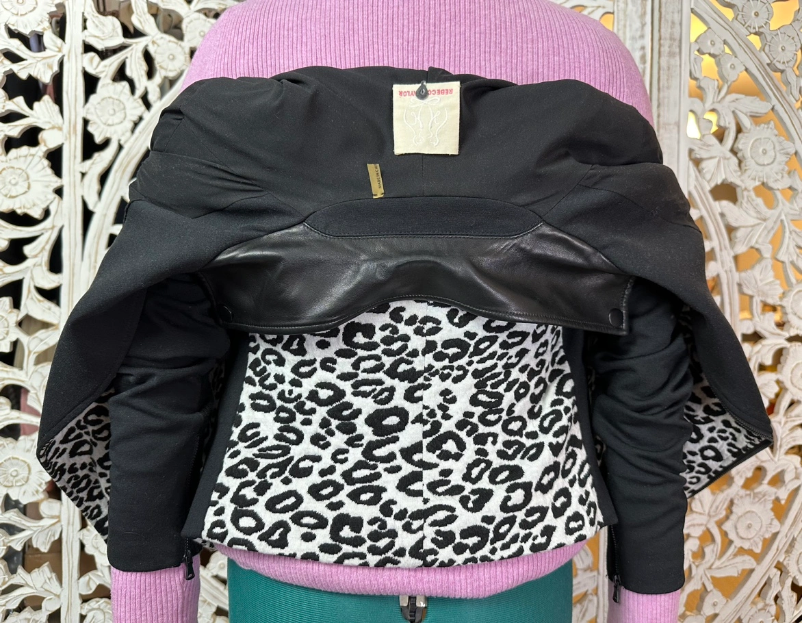 REBECCA TAYLOR Black & White Leopard Print Moto Style Jacket