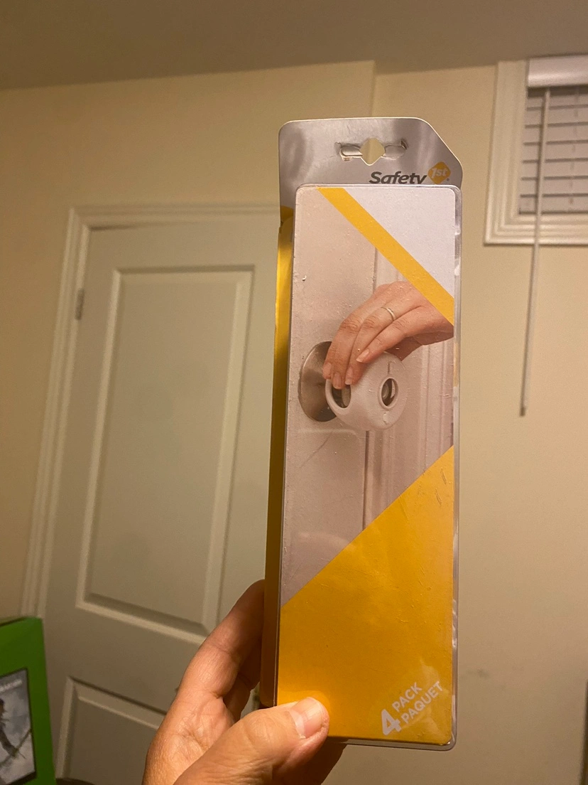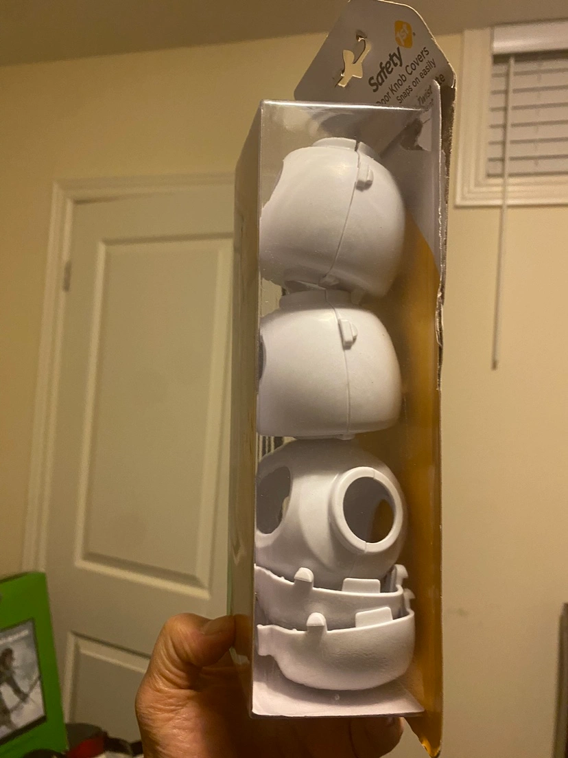 Set of four door knob covers. Great for use with little ones. Easy to install and remove. Safety 1st. New in package