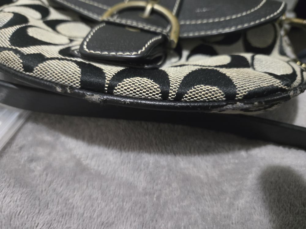 Well loved Coach Purse in good condition . Detachable leather shoulder strap with bonus chain strap or just use as a wristlet. Lots of options. Little inferiors with the leather shown in pictures still has lots of life. Can be used as a shoulder purse /clutch purse /wristlet. Perfect for a night out. Ready for a new home. Open to reasonable offers.