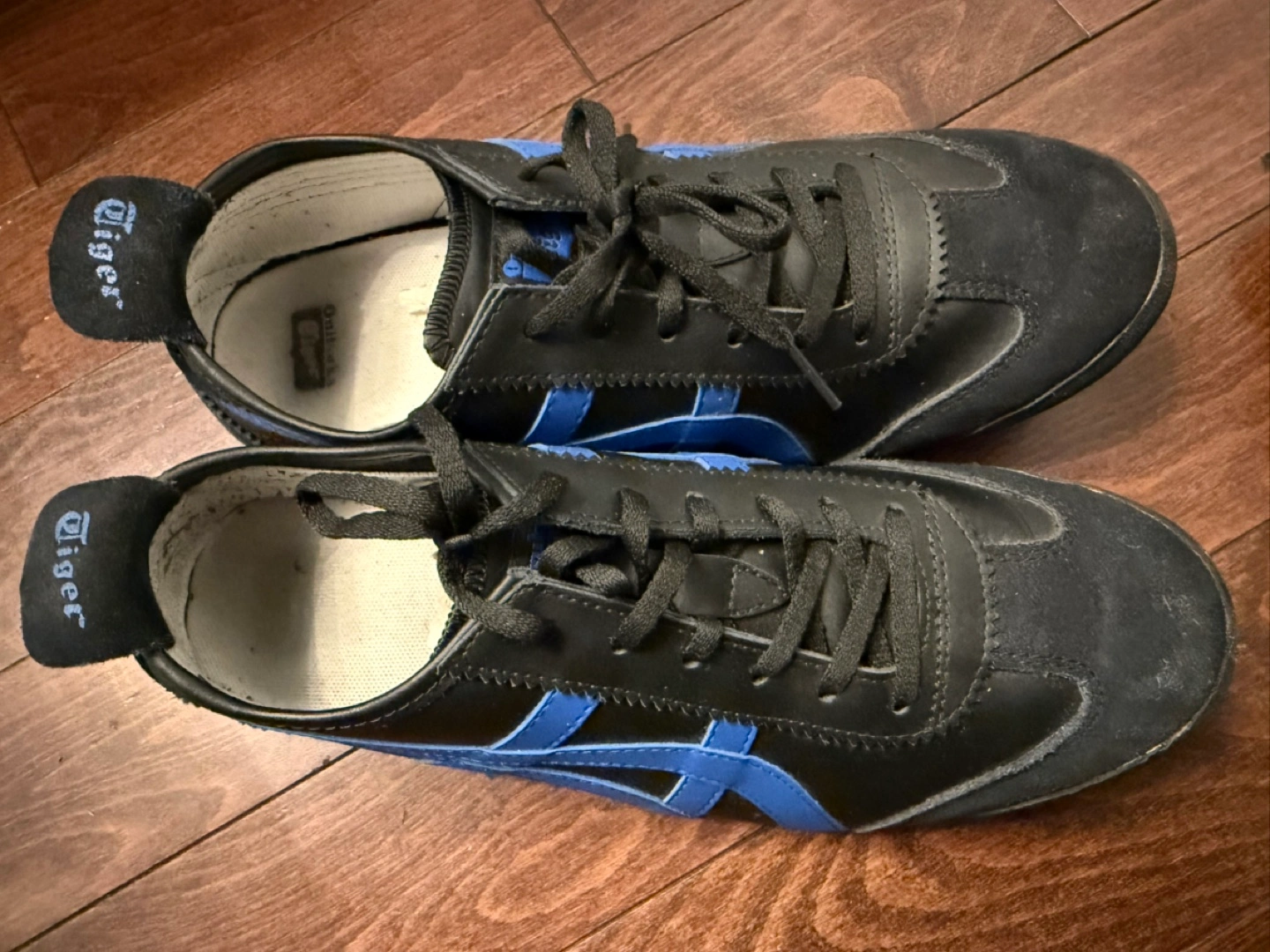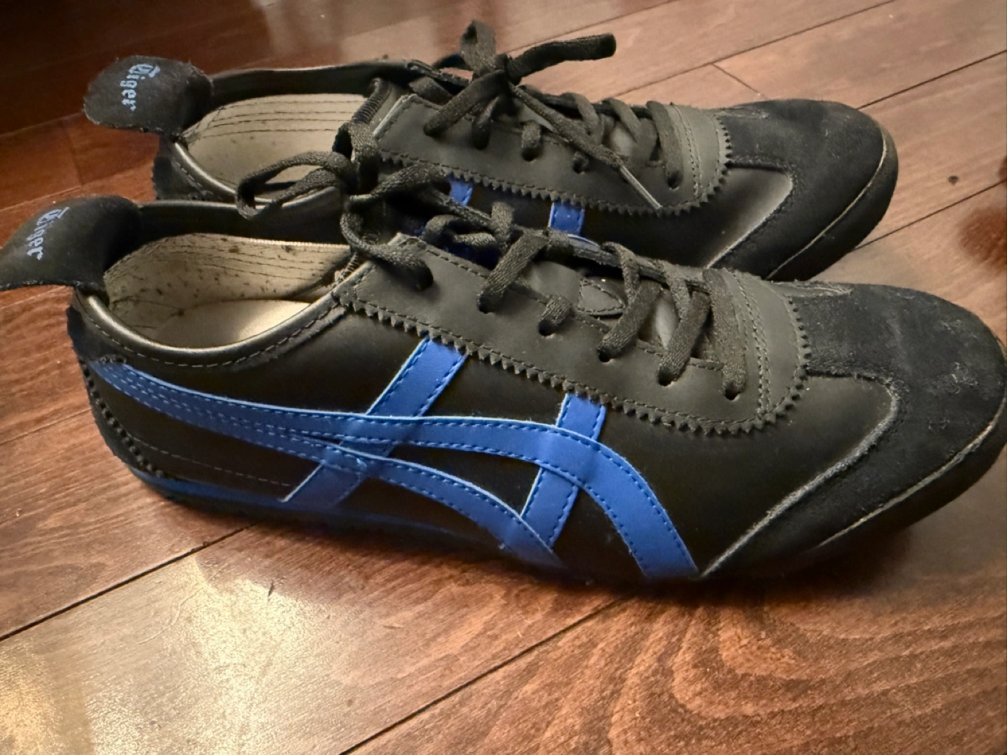 135Black leather sneakers with blue accents. Size 10 men’s