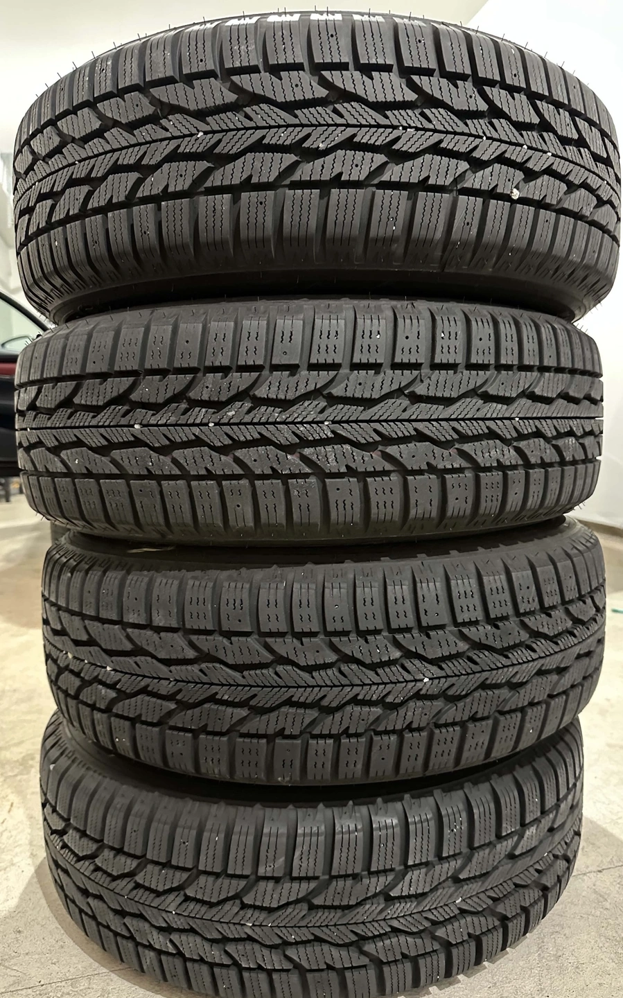 Used these winter tires on 2019 Mazda 3. They are in great condition and come with black steel rims (pretty much no rust). Still have plenty of thread life.