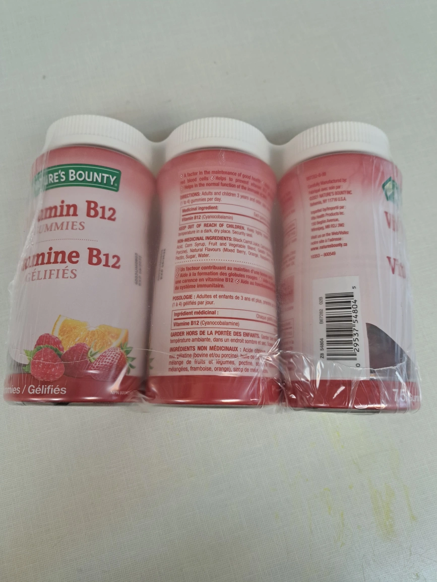 Vitamin B12 gummies. Suitable for adults and children 3 years and older. One to four gummies per day.