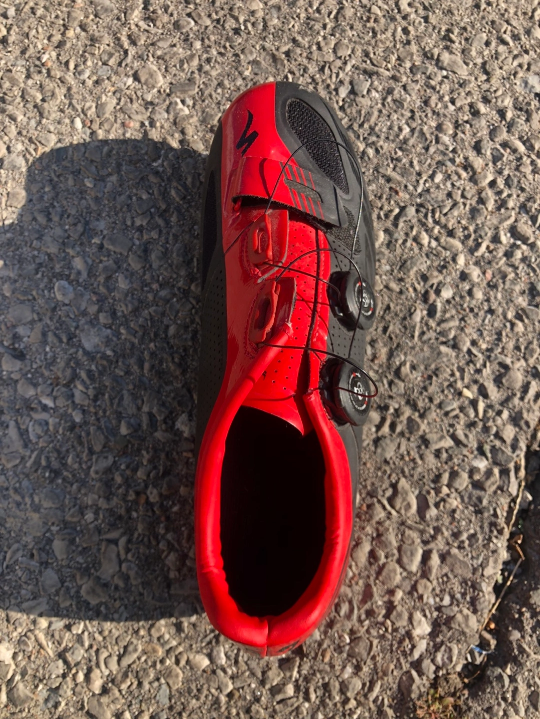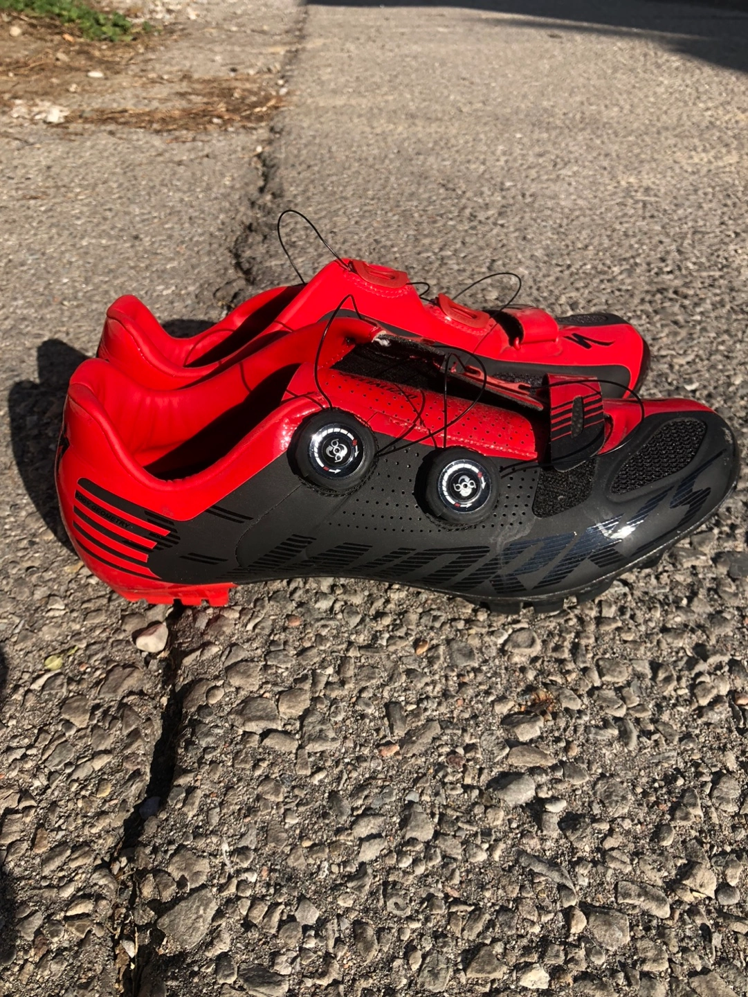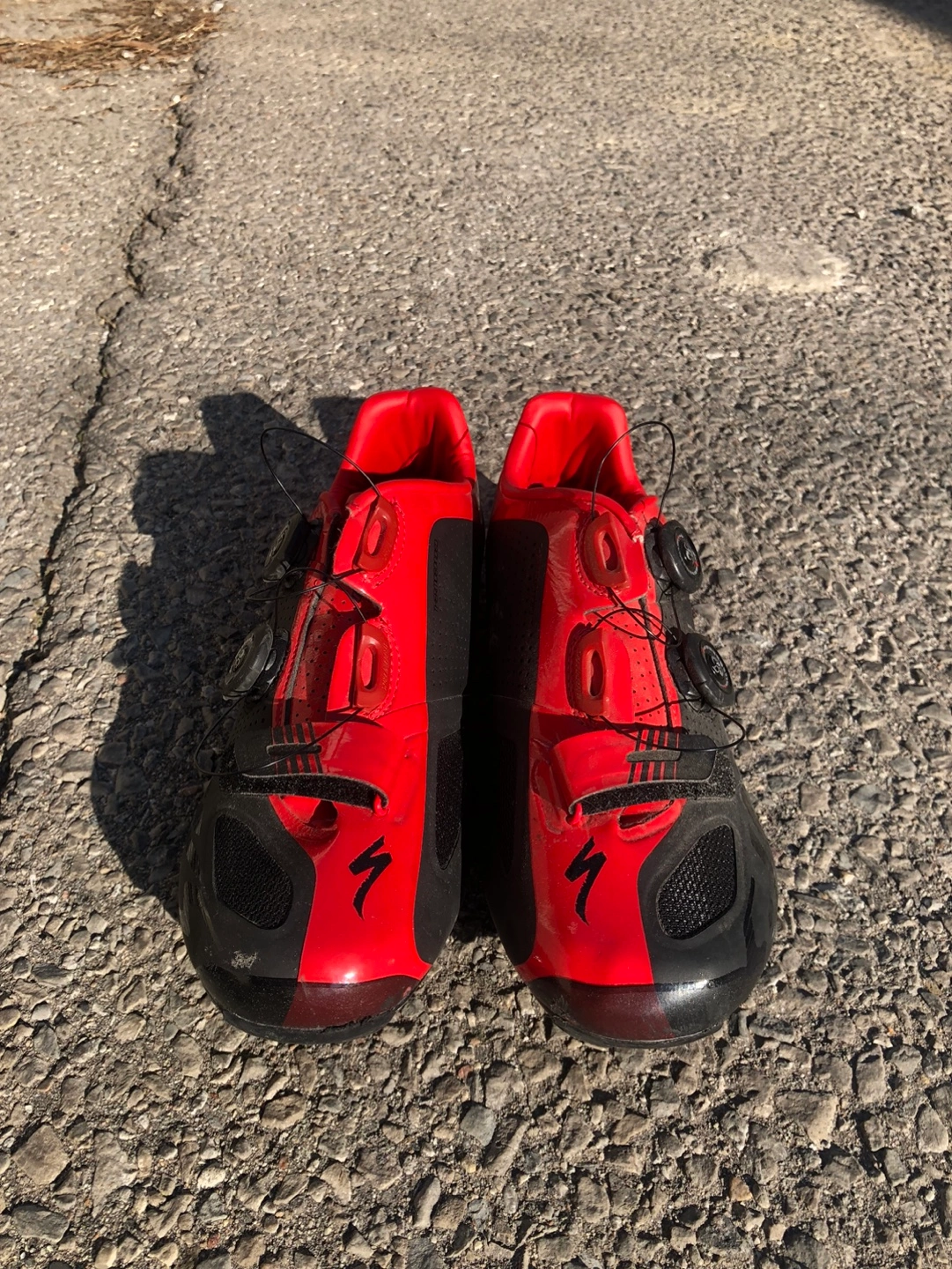 110Red and black CARBON bike shoes. S WORKS. Size 42 EU or size 9 US. Super light.