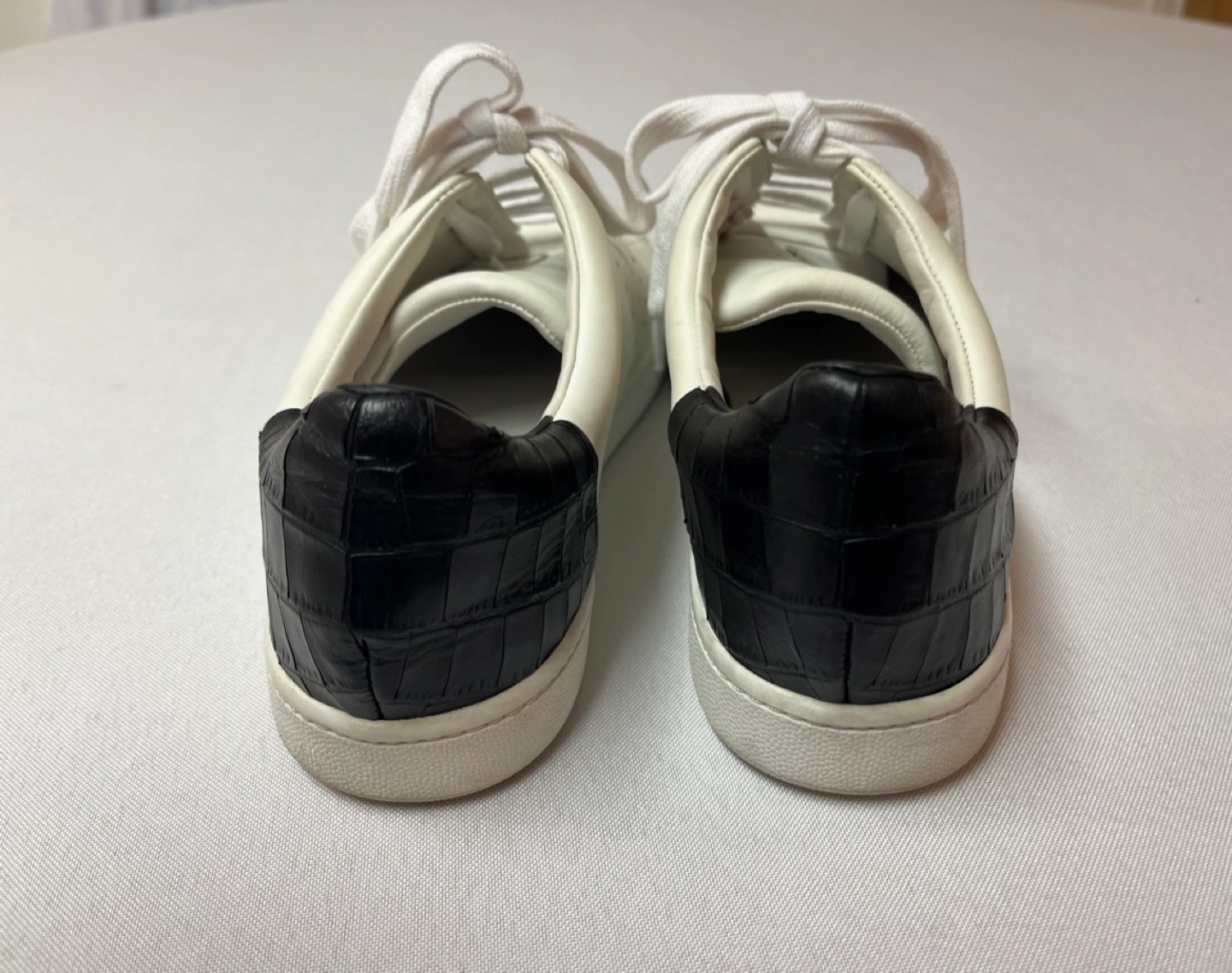 Style: Perforated V design on side, Lace Up, Round Toe Platform, Black Crocodile Embossed Leather Design on Heel, 1” Heel