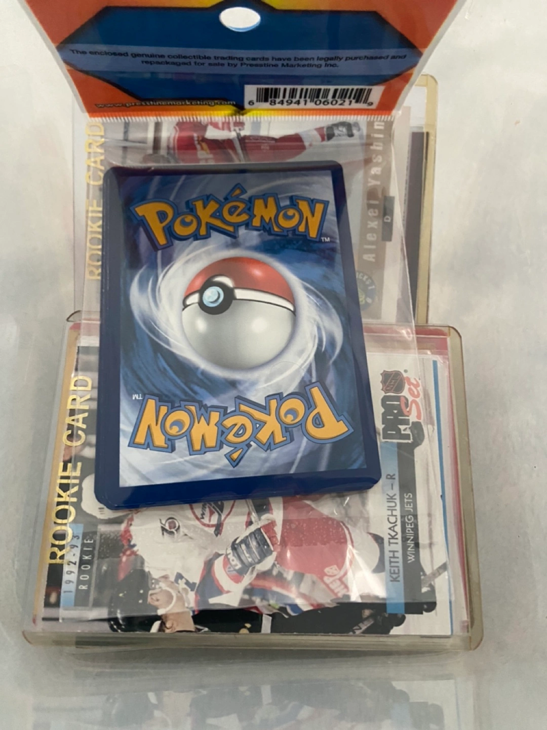 A bin of hockey cards including rookie cards of Keith Tkachuk, Alexei Yashin, Felix Potvin and Adam Foote.