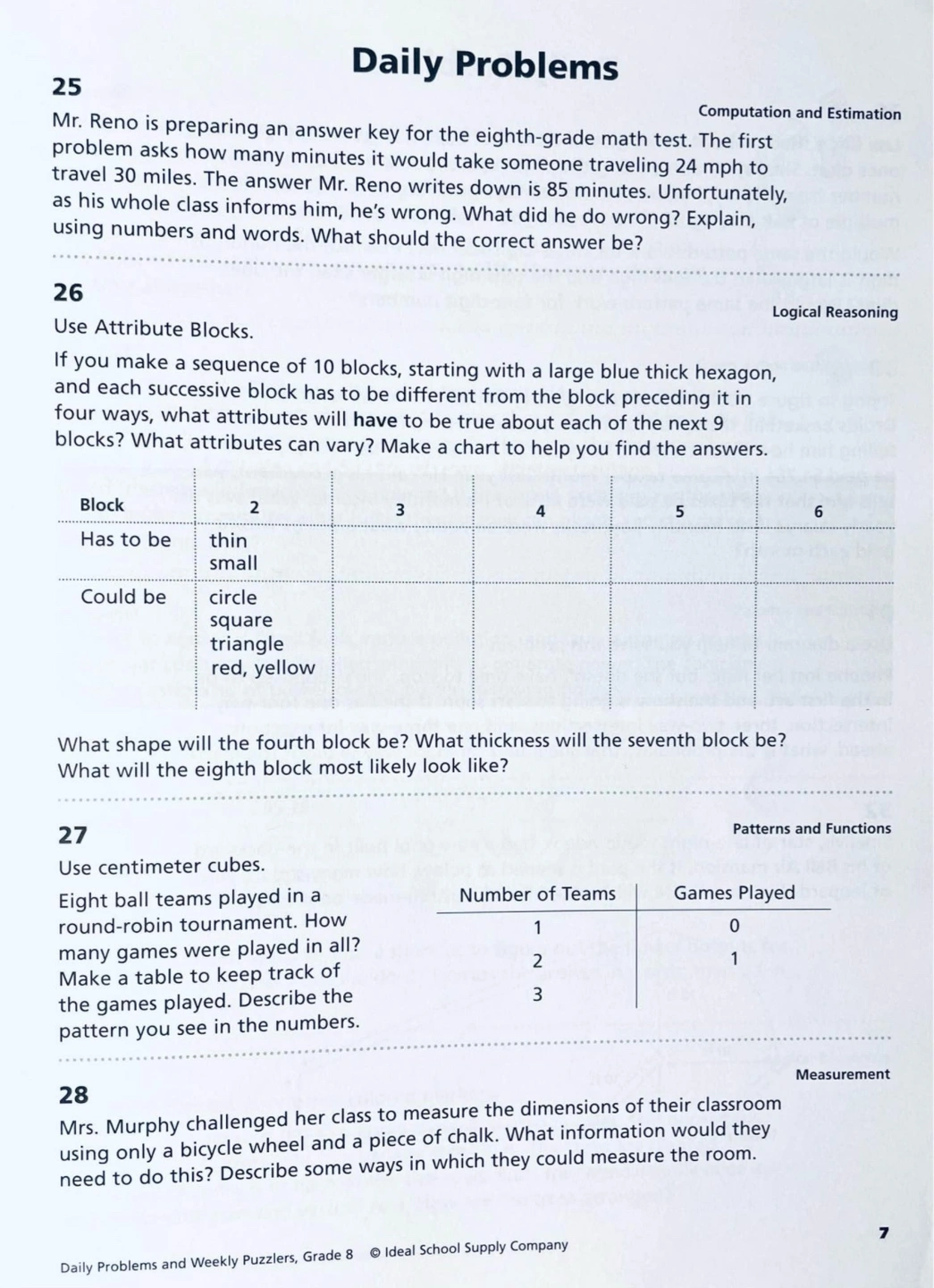 MATH: DAILY PROBLEMS & WEEKLY PUZZLERS (GR. 7&8)