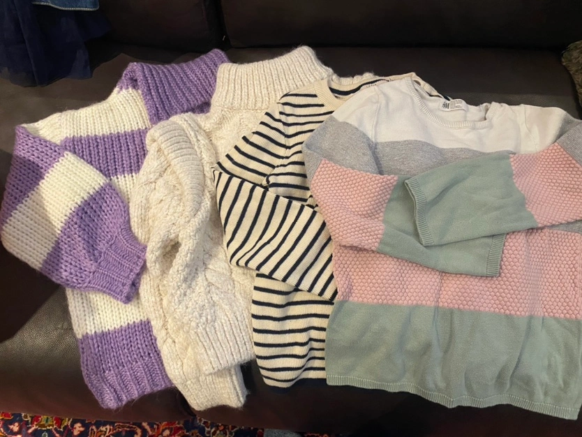 girls sweaters, sizes 7-8. (See photos) great for fall or winter. All are in excellent condition. Barely worn. The purple sweater is a turtleneck. made by H&M, Zara and SHEIN. $6 each or take all 4 for $20. Prefer to sell as a bundle