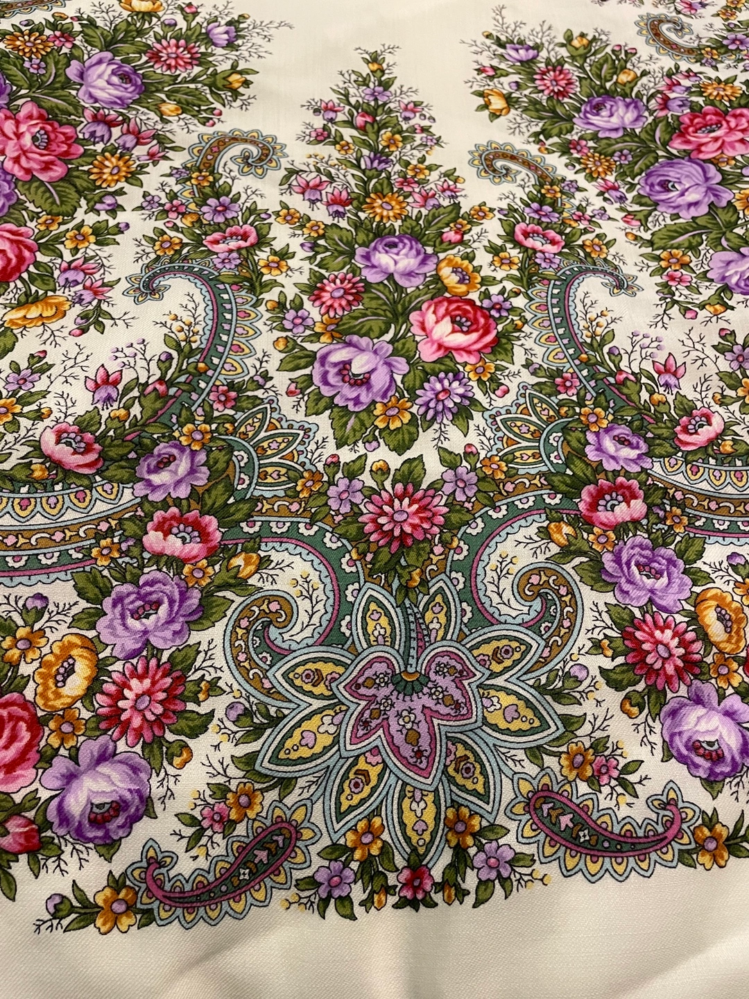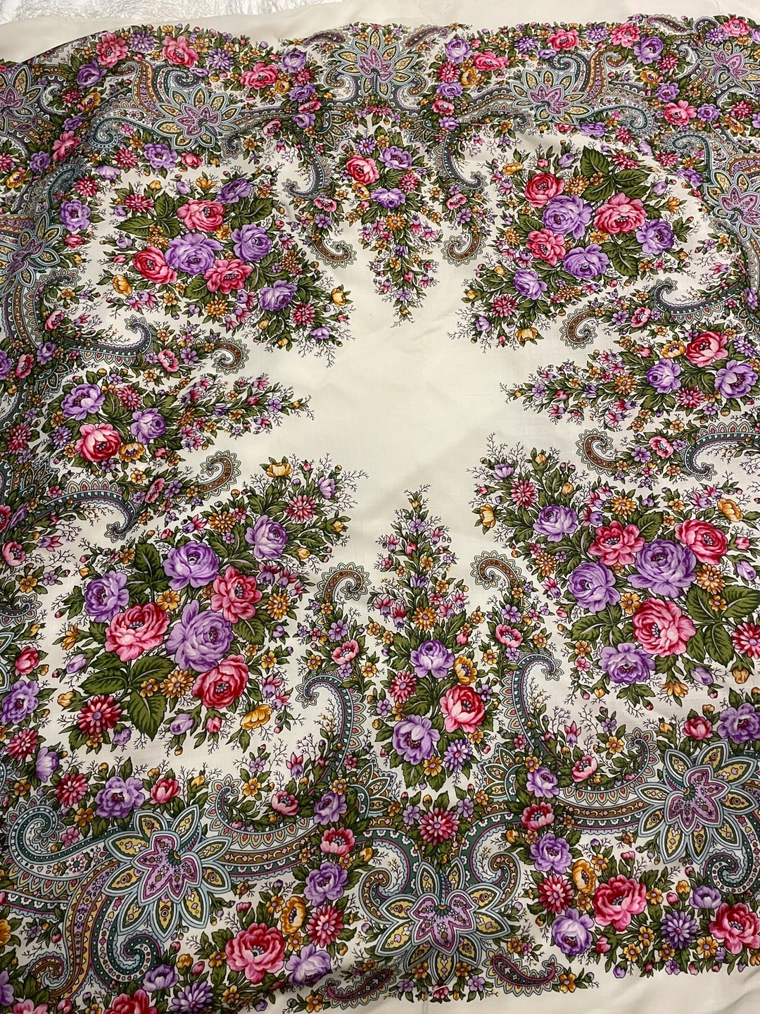 539100% wool shawl/scarf with a floral design, has a fringe on the edges. White background, featuring multicoloured flowers. Measures approximately 35 inches by 35 inches. Only worn once. In like new condition. Pet free & smoke free household. ๐ Moving Sale. Everything must go. Please check out my other listings to create bundles.