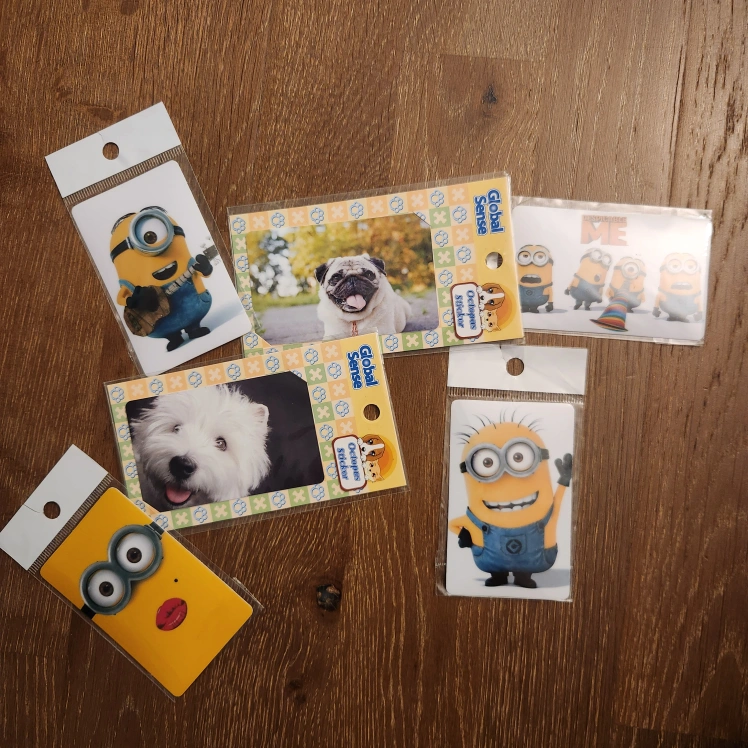These stickers are like compass card size. They can use for decoration on cards or compass cards , or you can just treat them like thicker stickers. They are Minion and dog designs. $1 per card