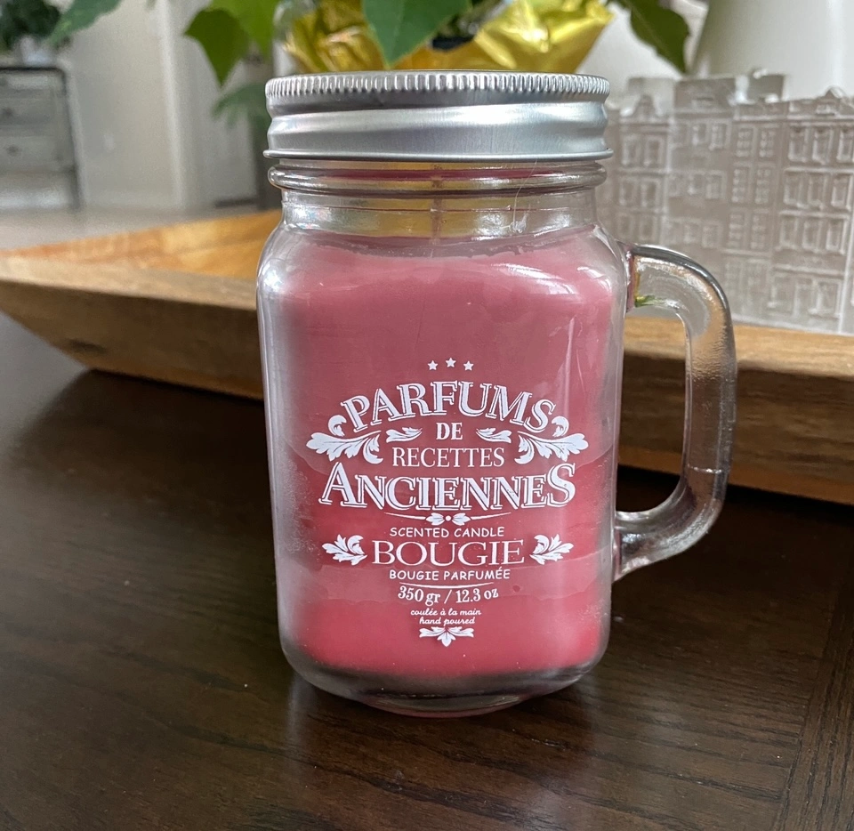 Bougie Parfumee scented candle in glass reusable mason jar.