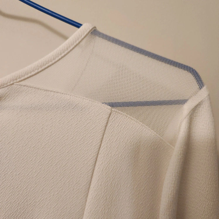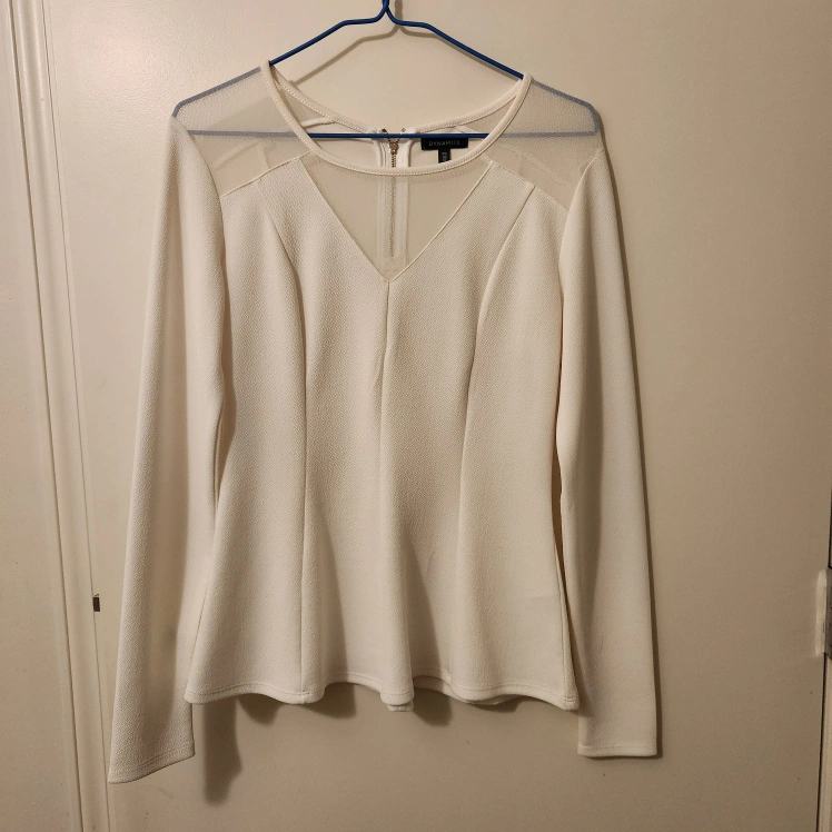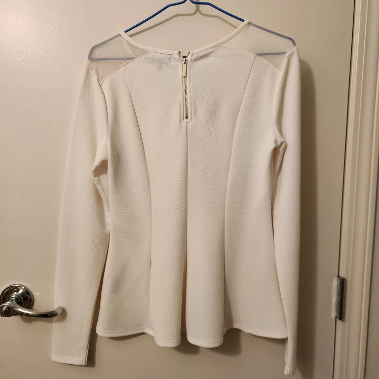 269White long sleeve top with mesh detail at the shoulders and back. Has a zipper in the back. Worn once only.