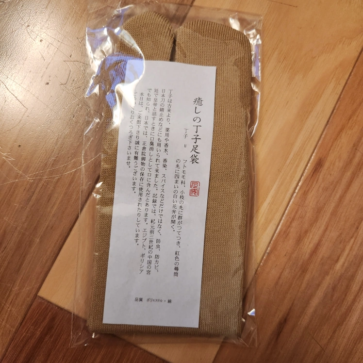 269Pair of tabi socks in a beige colour. New, unused and in original packaging. Made in Japan.