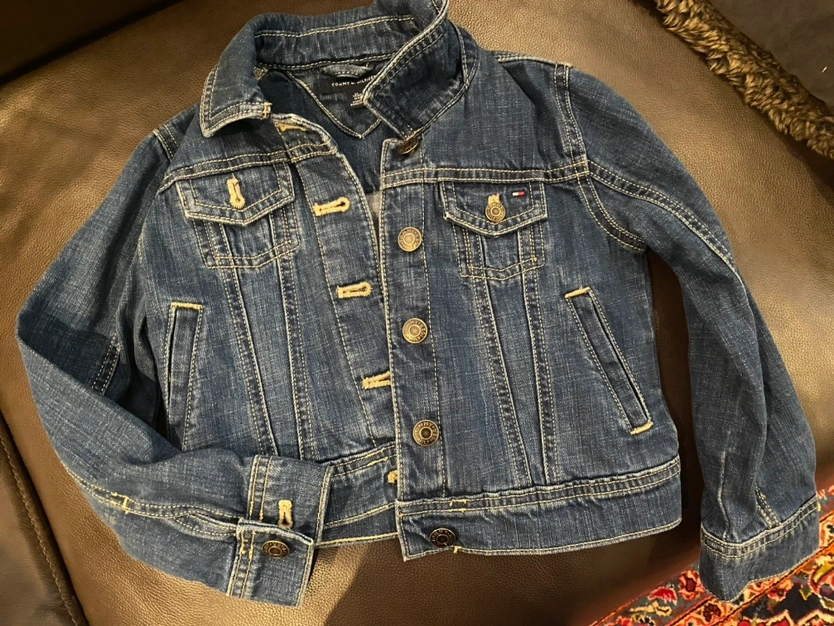 Kids' denim jacket. Blue, long sleeves, button closure. Tommy Hilfiger size 4/5 girls XS