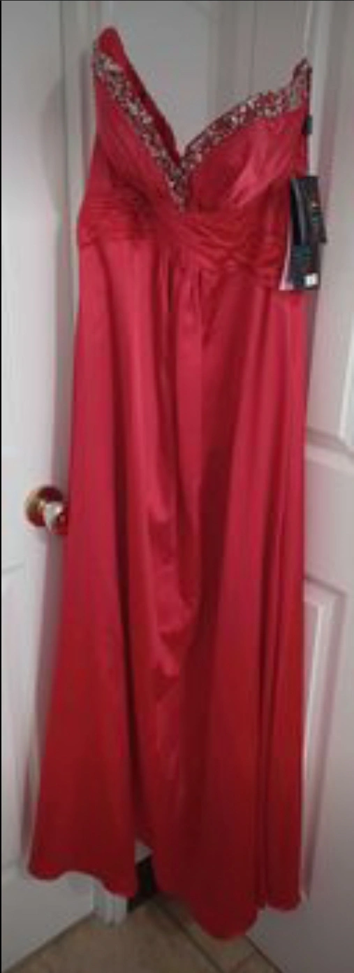 Strapless, floor length dress with a sweetheart neckline. Embellished with beading at the bust. Comes with a matching shawl. size 6. length 51". Pick-up Downtown Windsor. Brand new tags attached.