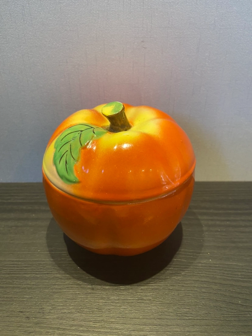 257Vintage ceramic apple shaped container with a lid. Made in Japan.