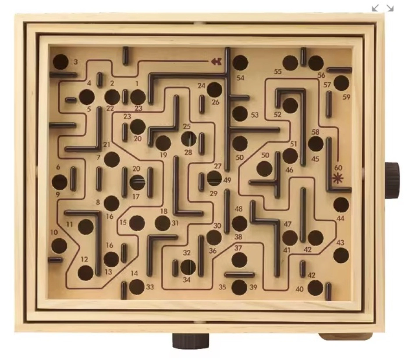 Place the metal ball at the starting mark and then twist the handles to move the labyrinth board and manoeuvre the metal ball from start to finish, avoiding obstacles along the way. See how far you can come!