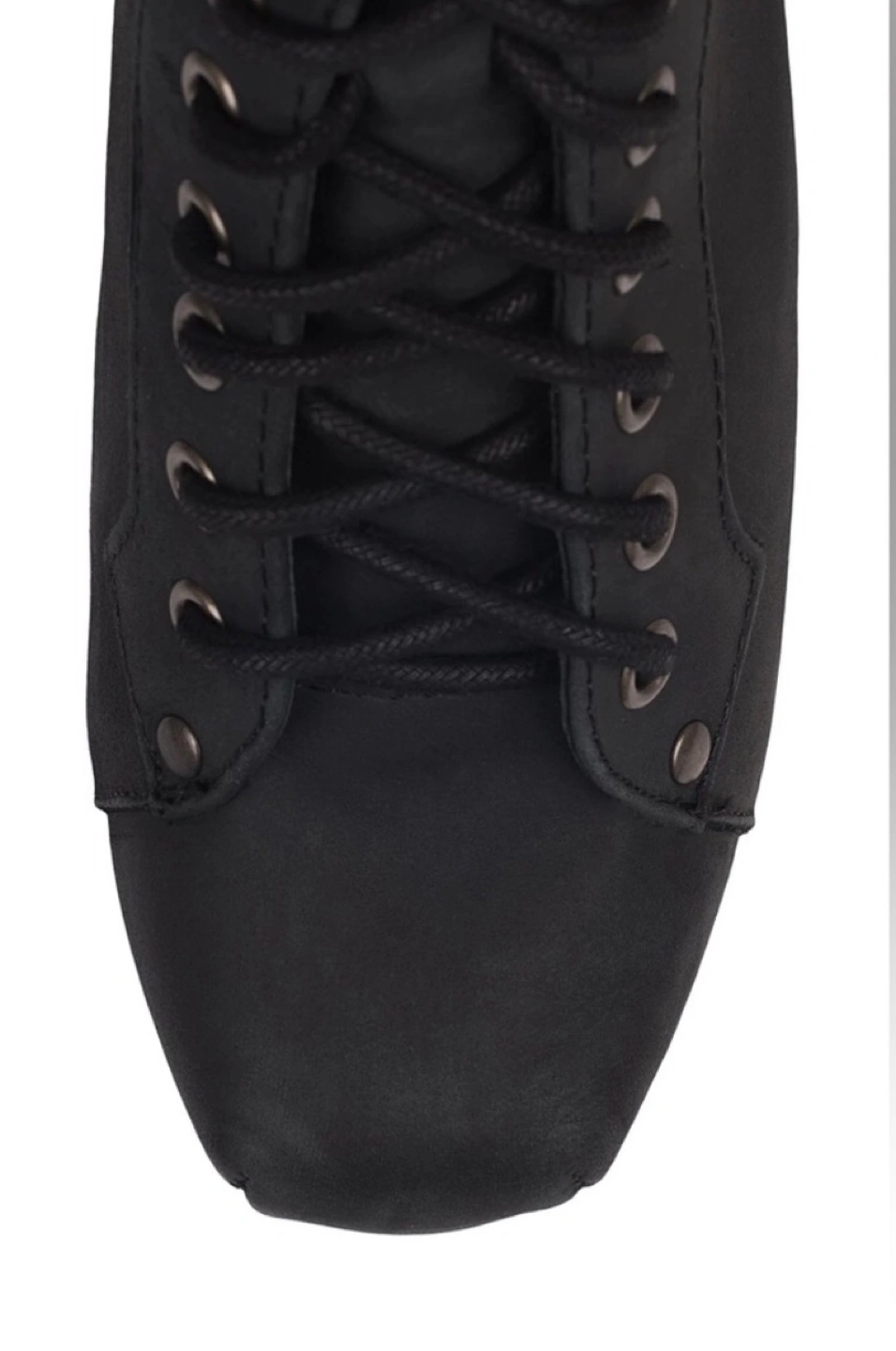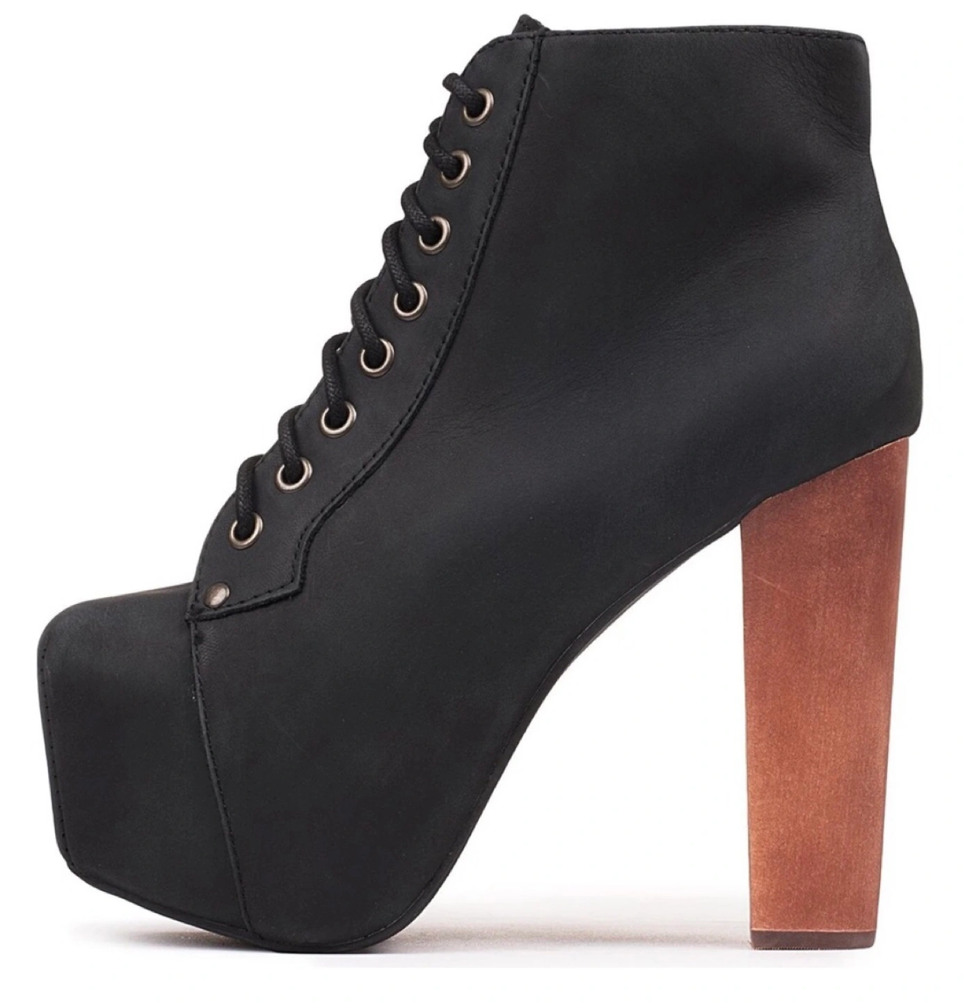 110Jeffrey Campbell style boot. Black leather lace-up platform boots with wood heels. Size 8.5. They are worn but still in a good condition. I can send you actual photos if you are interested. You will need new laces. Otherwise the sole and the heel is good condition.