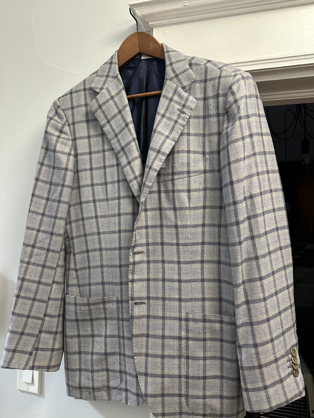 Classic fit, single-breasted, two-button blazer. Features two flap pockets and a chest pocket. Made in Italy. 100% cashmere.