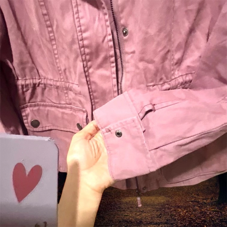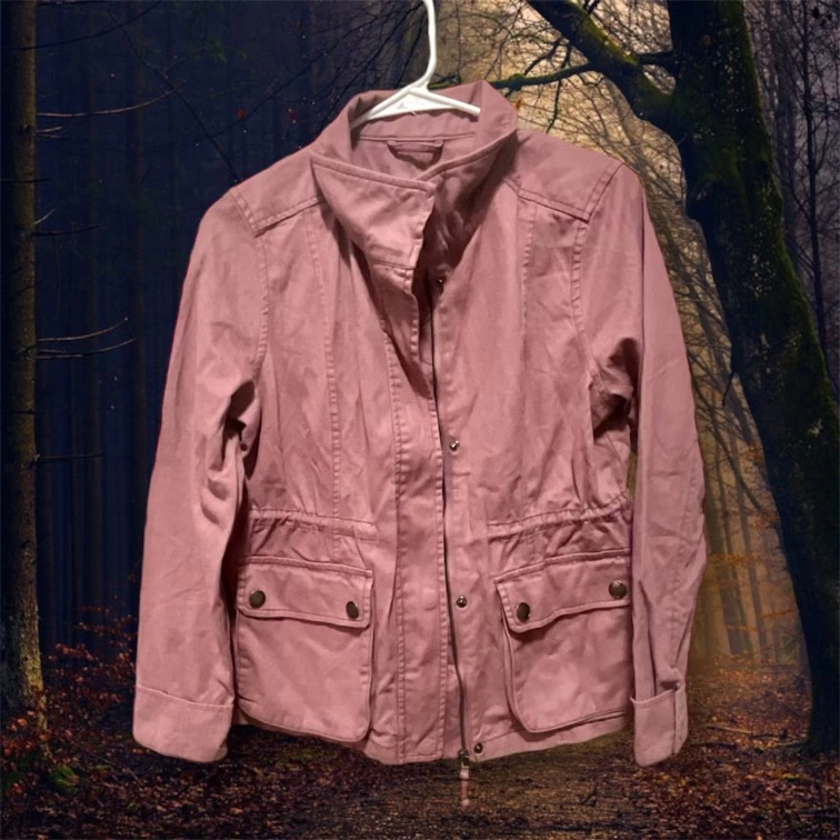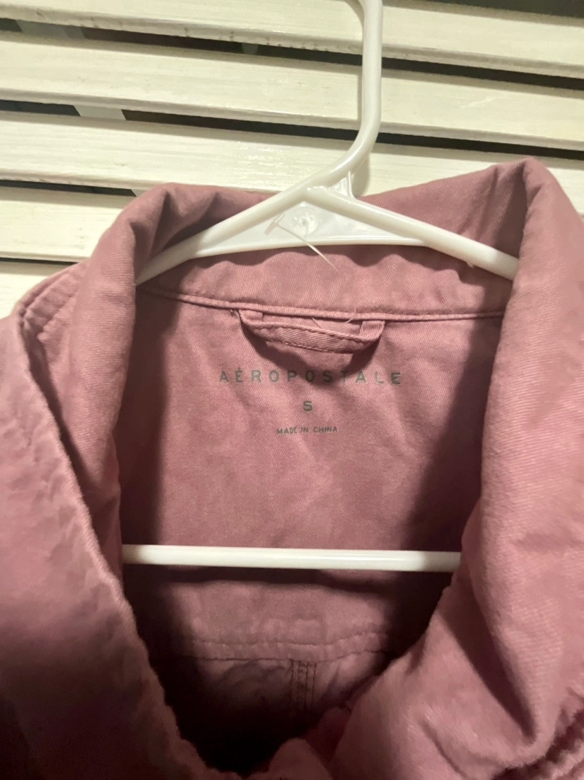 Size small. Long sleeves, zipper closure, two pockets, drawstring waist.