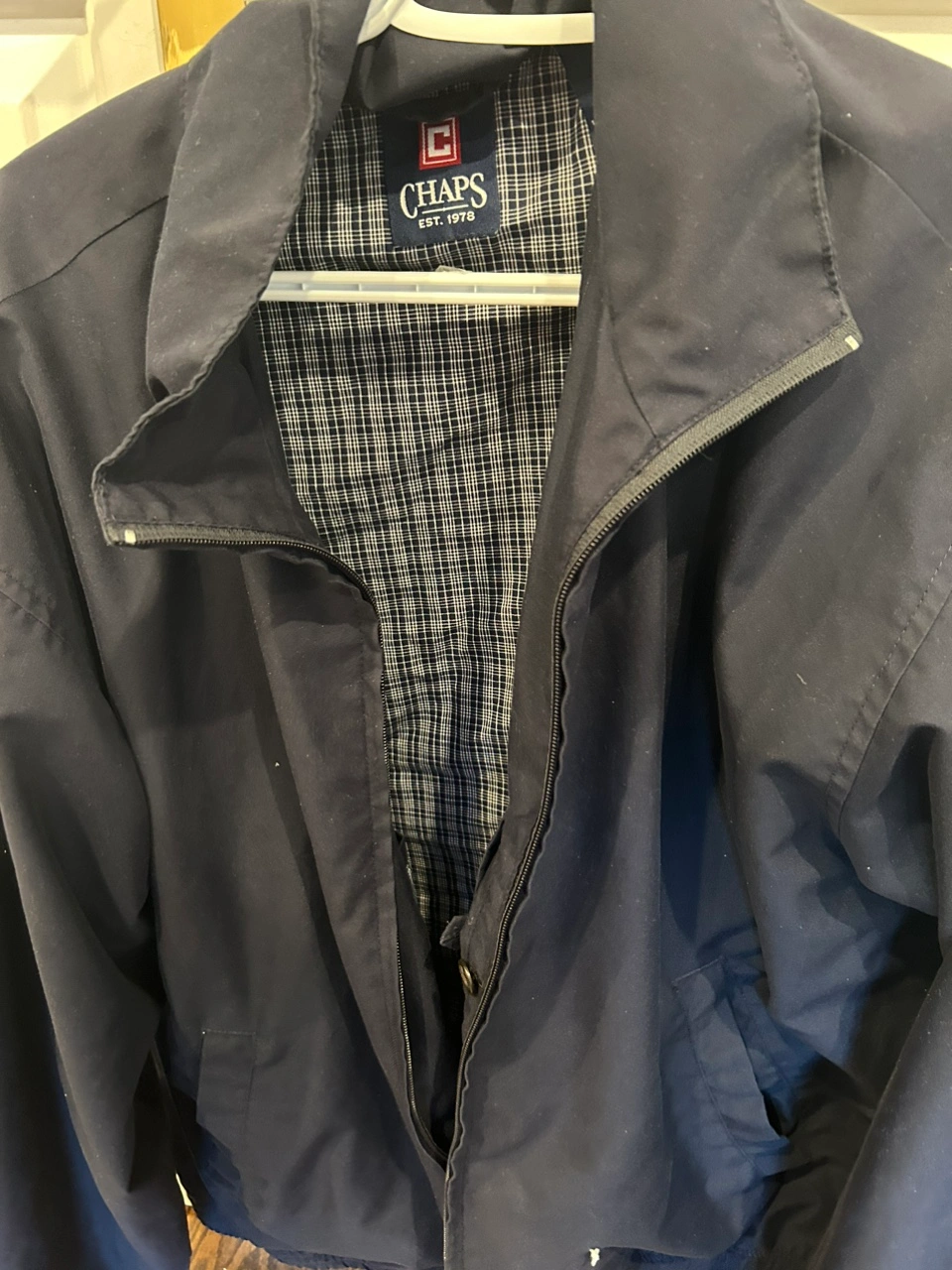 Have a navy Chaps Large coat that’s in great condition good for fall and spring.