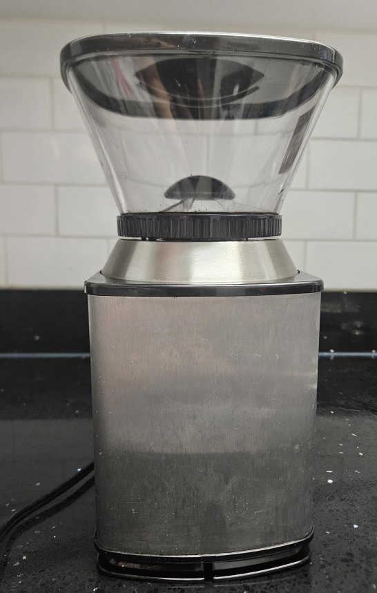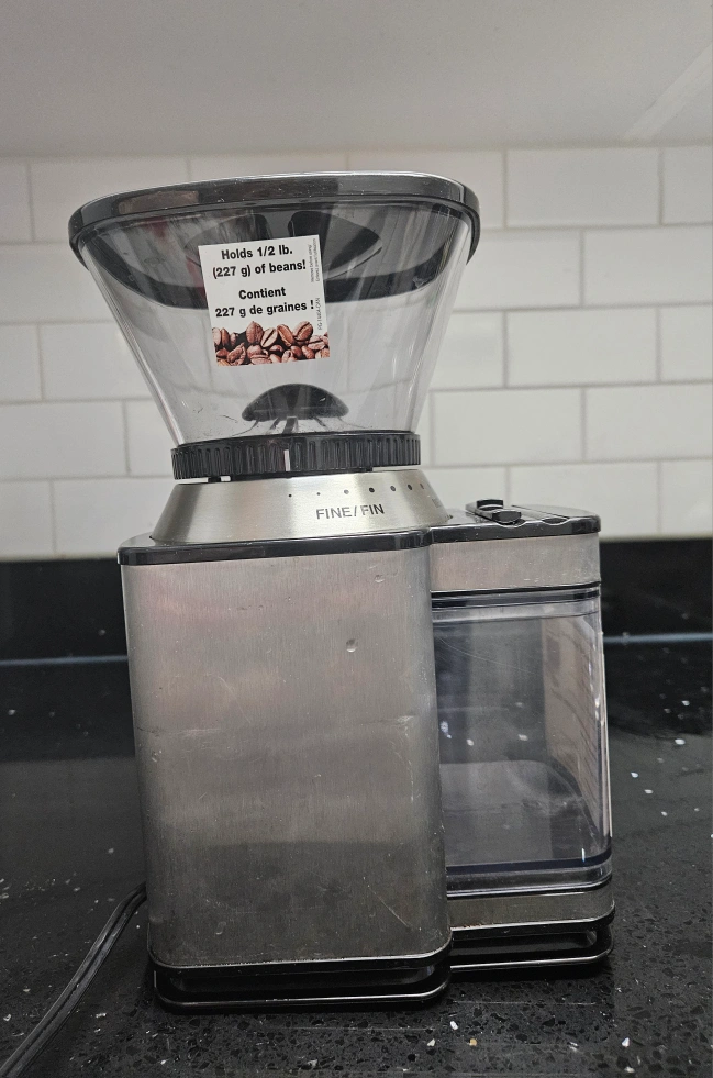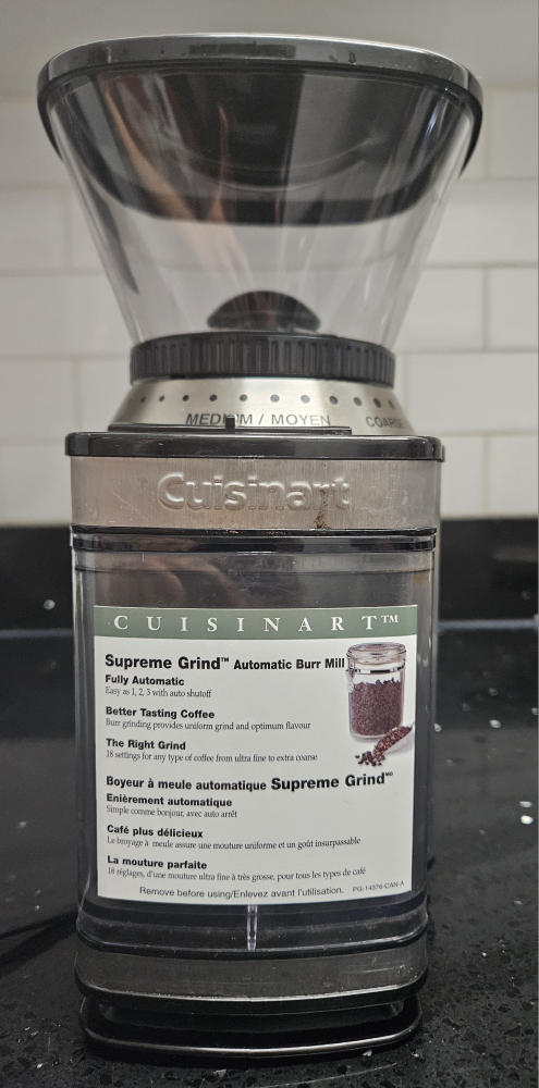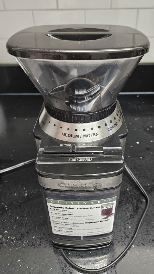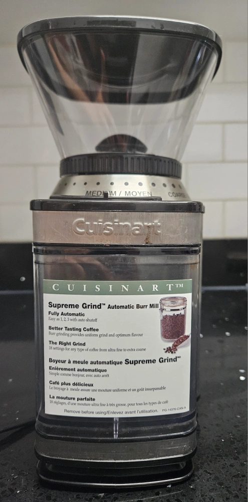 Used coffee grinder in good working condition. Includes a removable bean hopper and a grind size selection dial, 18 settings in total. Includes a container for ground coffee. Got a new coffee grinder hence selling this one.