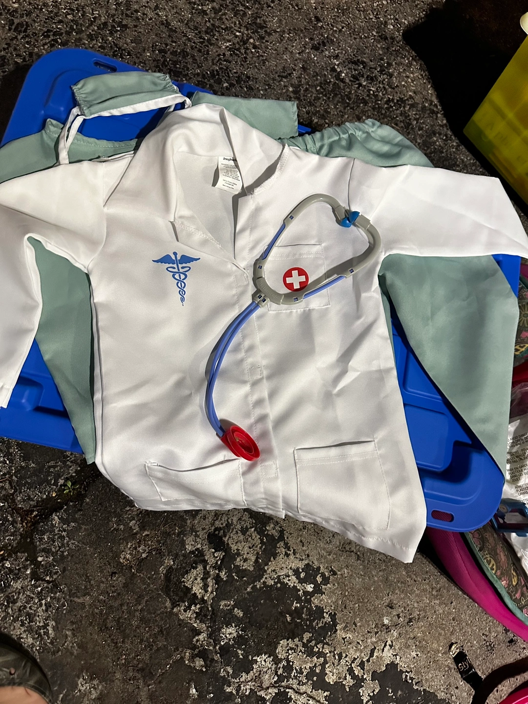 553Includes scrubs, lab coat, and stethoscope. Suitable for children.