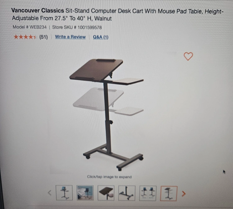 Sit-Stand Computer Desk Cart - Adjustable Height