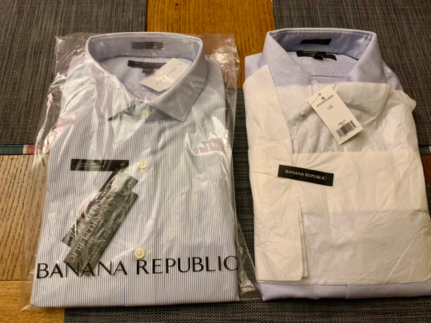 Two striped dress shirt, long sleeve, collared, one still sealed, one not but never worn. Retail $100 each; selling for $25 as I don’t go into the office these days so I don’t need new shirts.