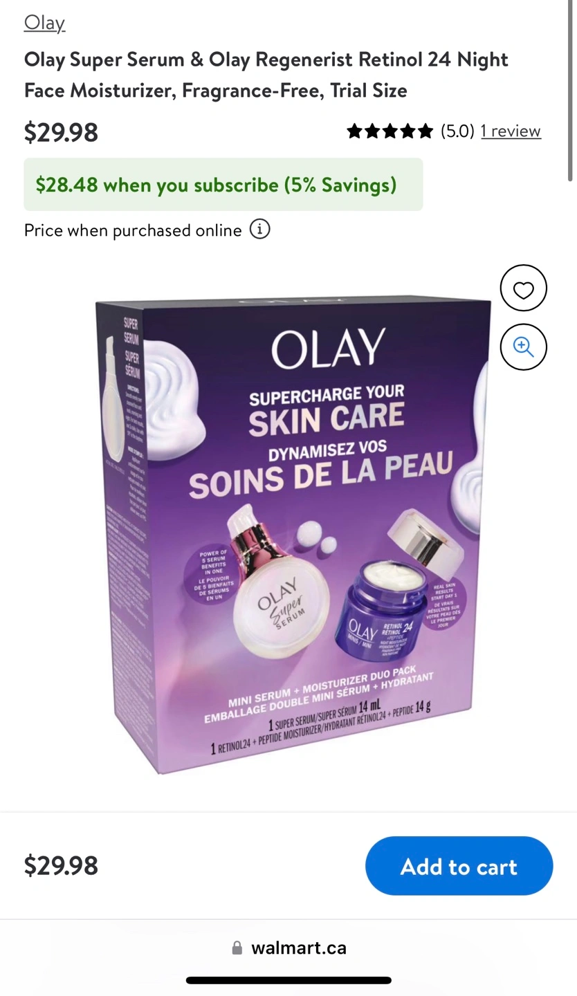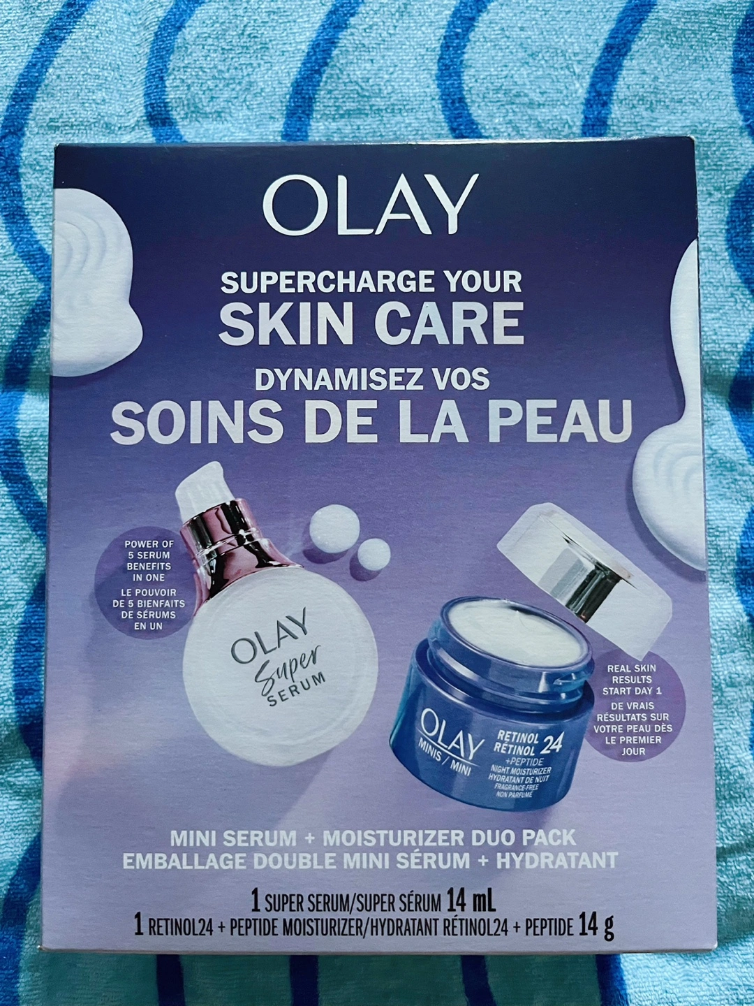 839Mini serum and moisturizer duo pack. Includes one Super Serum and one Retinol 24 + Peptide Moisturizer. Trial size. Brand new .just one. Reg:$30 *tax. Each Cash only Pick up at Don Mills and Lawrence