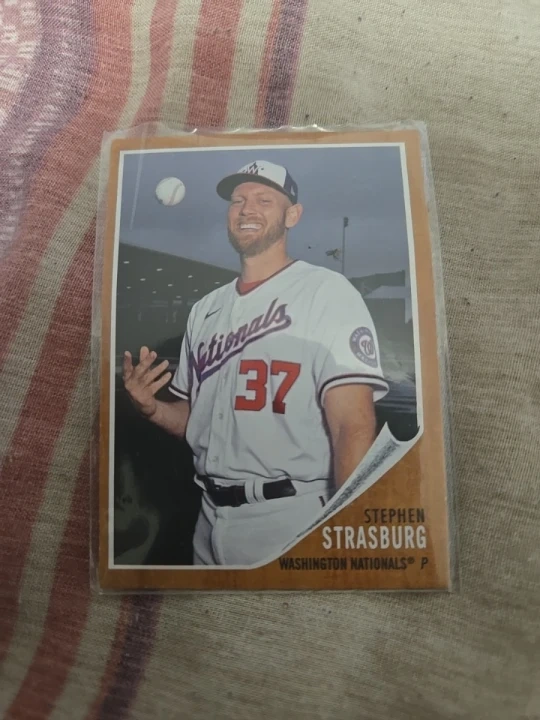 Selling a Stephen Strasburg baseball card, featuring the Washington Nationals pitcher. The card appears to be in good condition and is sealed in a protective sleeve. A great addition for any baseball fan or card collector!