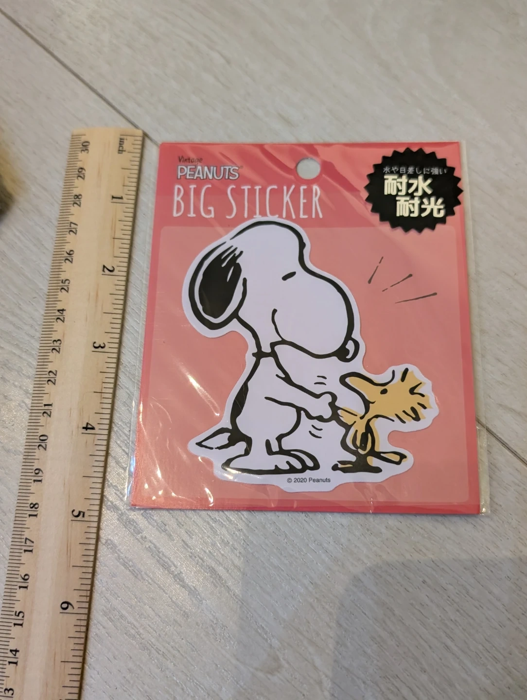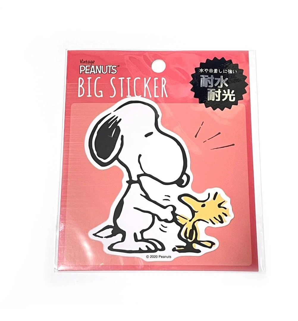 Vintage Peanuts BIG sticker featuring Snoopy and Woodstock. It's waterproof and UV resistant, perfect for decorating various items like suitcases, laptops, or bottles. Great for fans of classic cartoons!