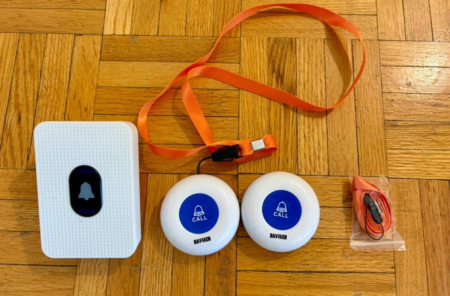 【GIVES PEACE OF MIND】Plug in Receiver and battery powered call button. The Daytech caregiver pager is a wireless emergency alert system that allows you to take better care of the elderly/sick at home. When they are in trouble, just press the call button and they can get help in time without yelling, giving our family peace of mind.