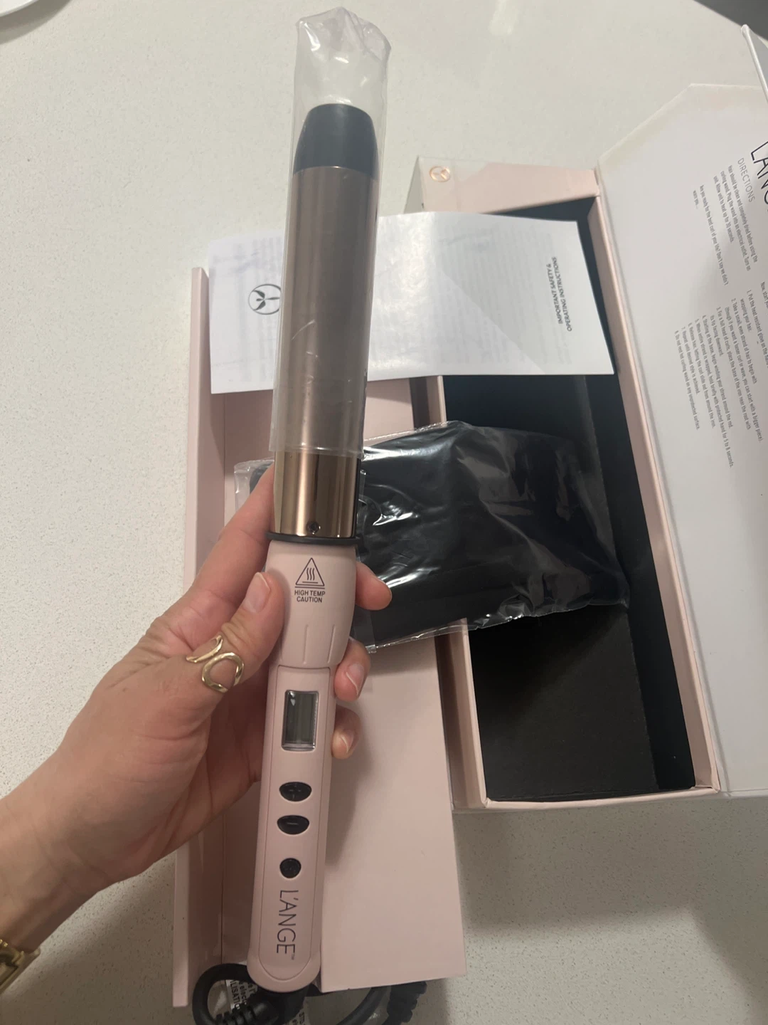Lange Lustre 1.25 inch titanium digital wand. It's a curling wand with a digital temperature display and variable heat settings up to 450°F. Includes original box and instructions.