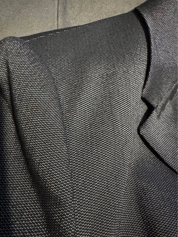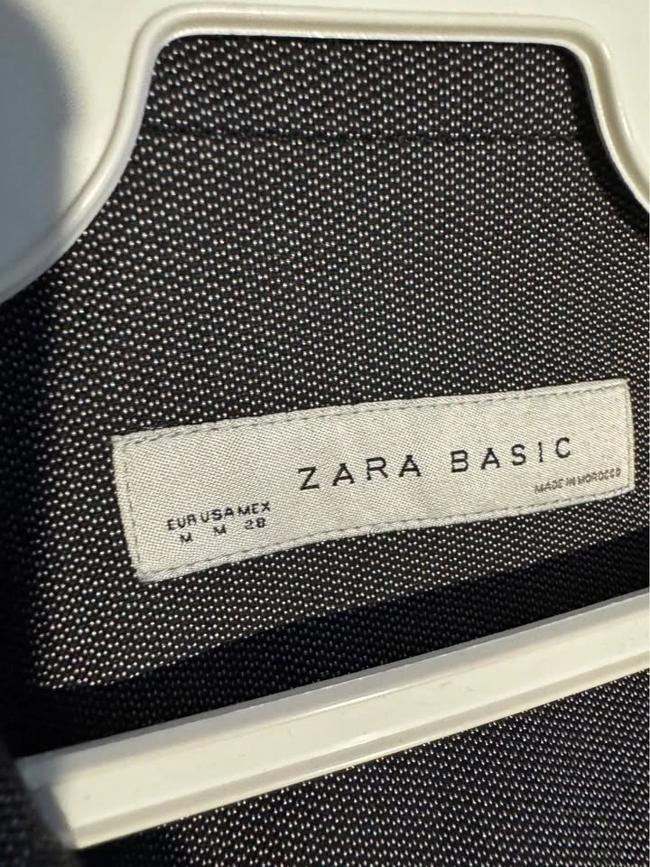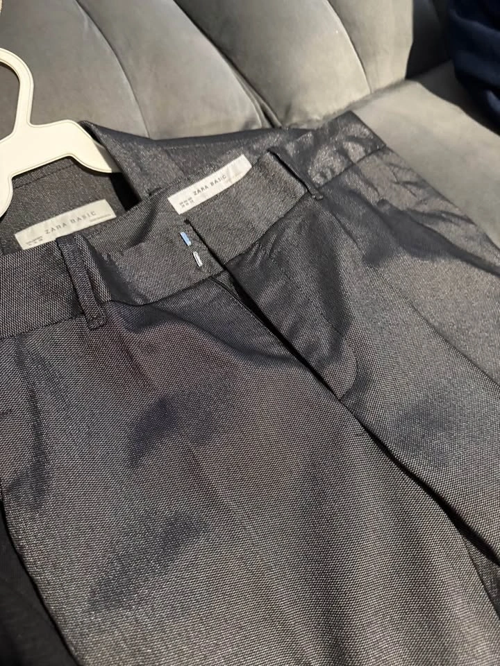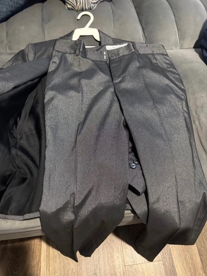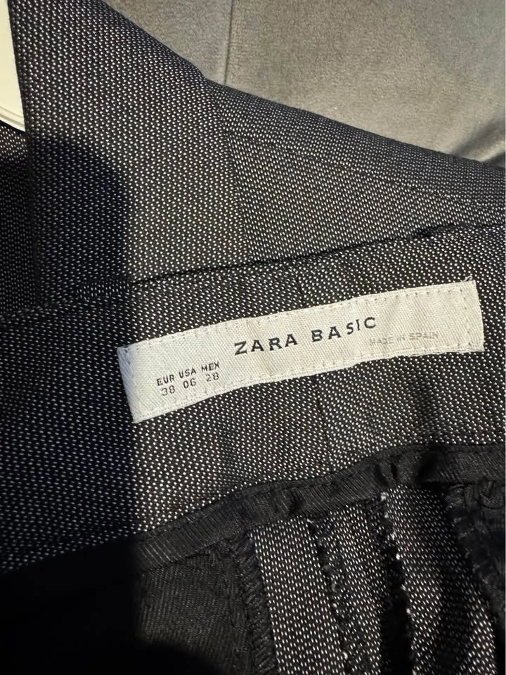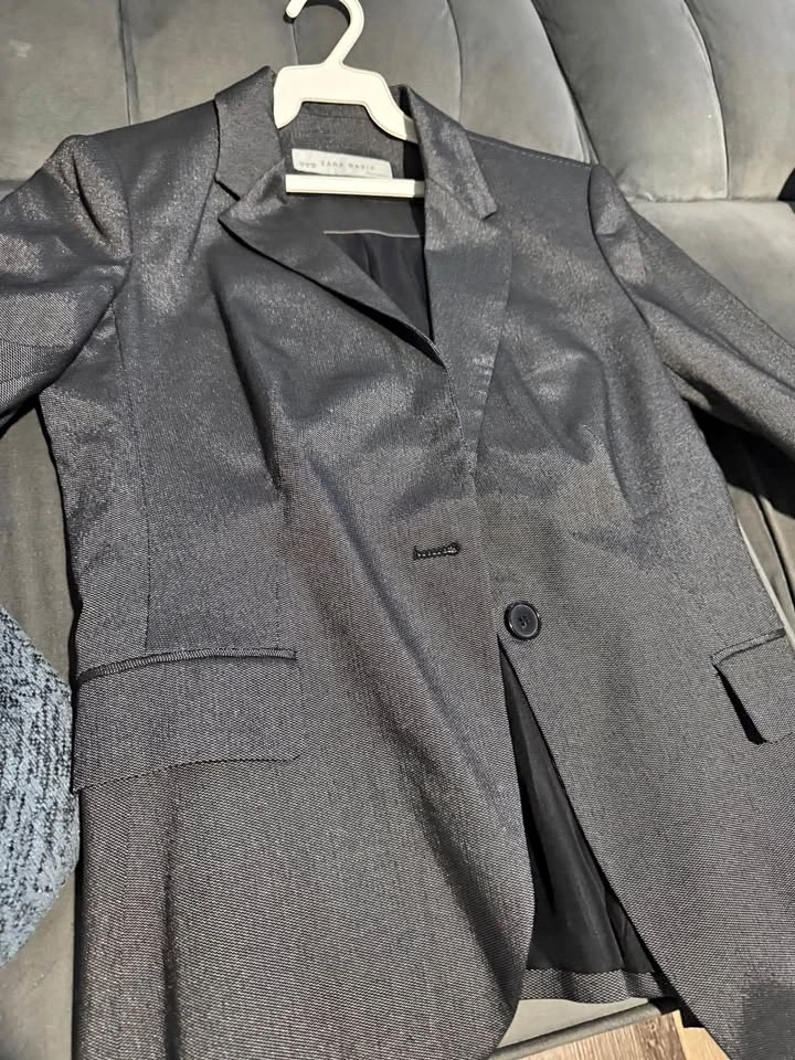 Stylish Zara Basic suit. Dark gray color has a cool subtle shimmer to the fabric. Comes with the blazer and matching pants. Great for a sharp look!