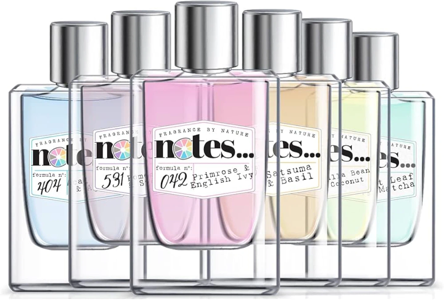 notes Fragrance by Nature Formula 042 features a blend of primrose and English ivy. It has top notes of lemon, raspberry, black raspberry, strawberry, and coconut. The middle notes include peach, violet, and honeysuckle, with base notes of plum blossoms, musk, and vanilla.