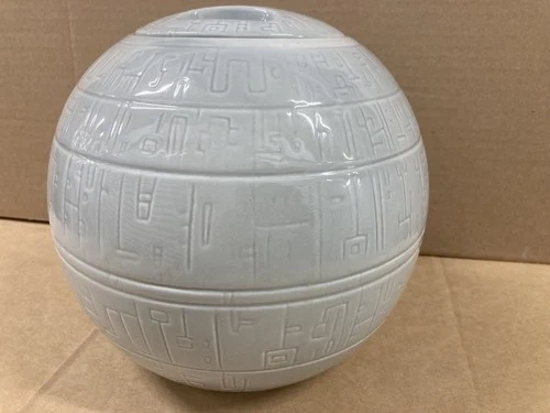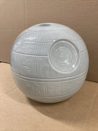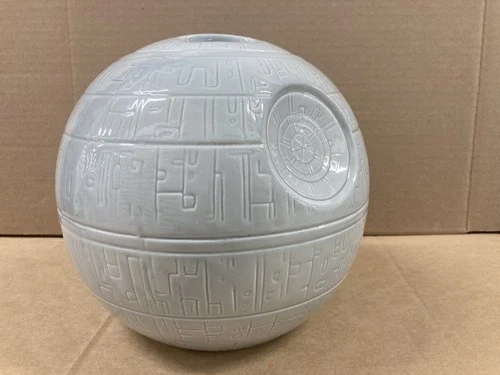 Explore the galaxy of Star Wars memorabilia with this unique Zeon ceramic cookie jar, an homage to the iconic Death Star from the beloved IV: Star Wars movie. Standing at an impressive 7 inches tall, this jar is a must-have for fans of the franchise, capturing the essence of the epic battle station in a functional and display-worthy form. Crafted with care, this piece is a vintage treasure from the 2010 era, originating from China and brought to life by Disney's dedication to quality. Whether it's for storing treats or as a standalone display piece, this cookie jar is perfect for any Star Wars enthusiast looking to add a touch of sci-fi horror to their collection. Great condition.