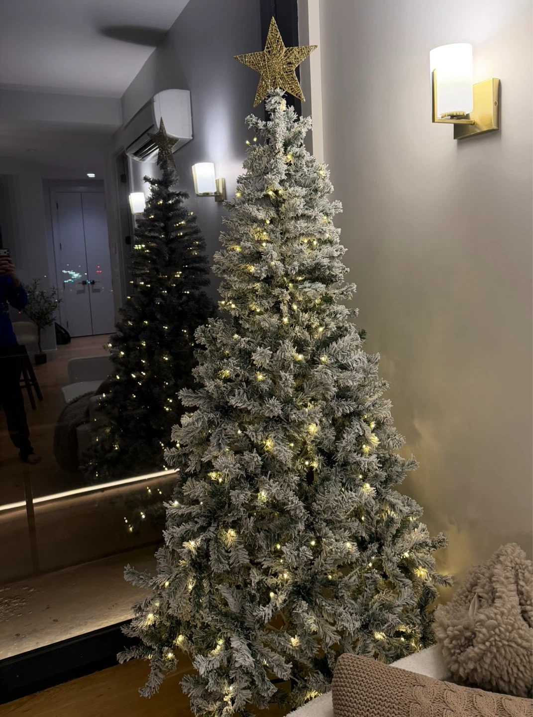 Selling a lovely Christmas tree, perfect for the holidays! It comes with pre-installed lights, star topper, and 40 crystal ornaments. It's in perfect condition, just used once, and ready to bring some festive cheer to your home.