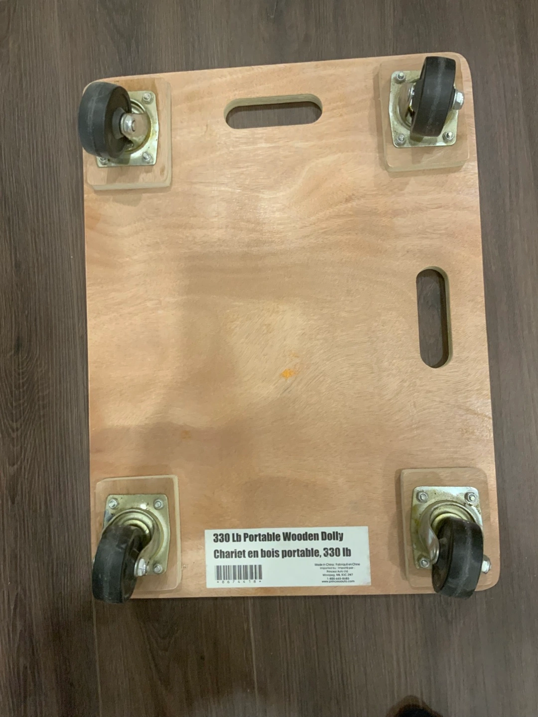 Selling two (2) portable wooden dolly’s each with a weight capacity of 330 lb. Deck size is 18” X 24. They are perfect for moving heavy items around the house or workplace. It features a sturdy wooden construction and four smooth-rolling wheels for easy maneuverability