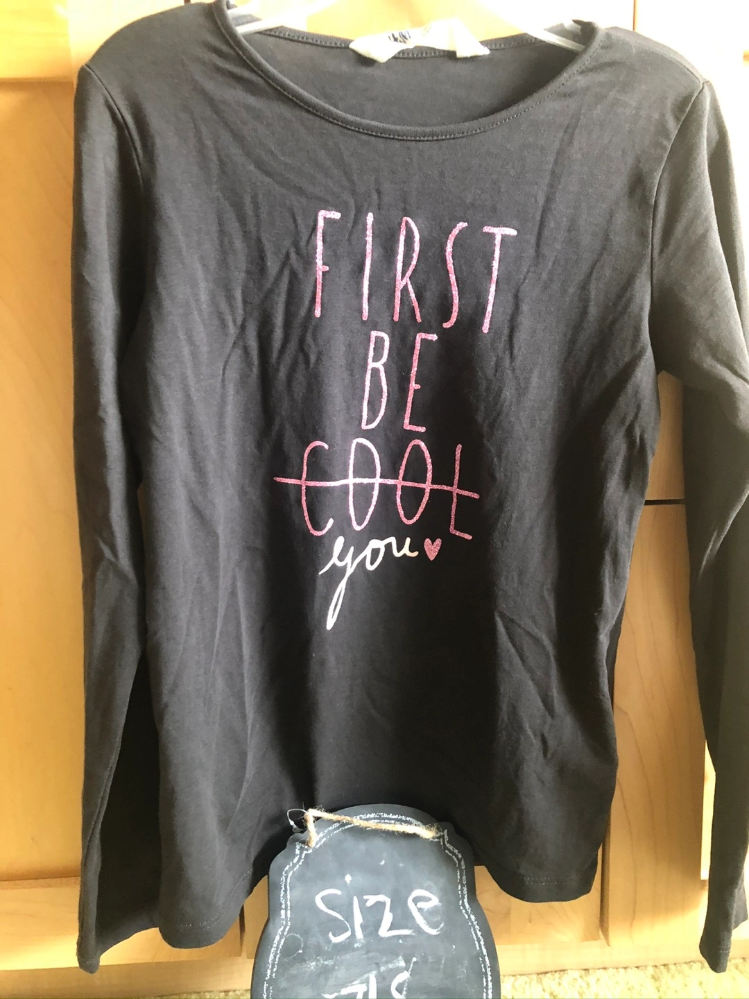 H & M girls Long sleeve t-shirt with a pink glittery slogan. Size 7/8.