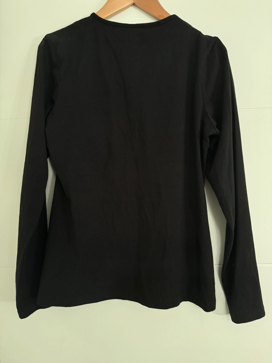Super cute black longsleeve with front wrap detail! From H&M. Soft and comfortable, ballet-core inspired. Very flattering, sadly too big on me so it’s never been worn.
